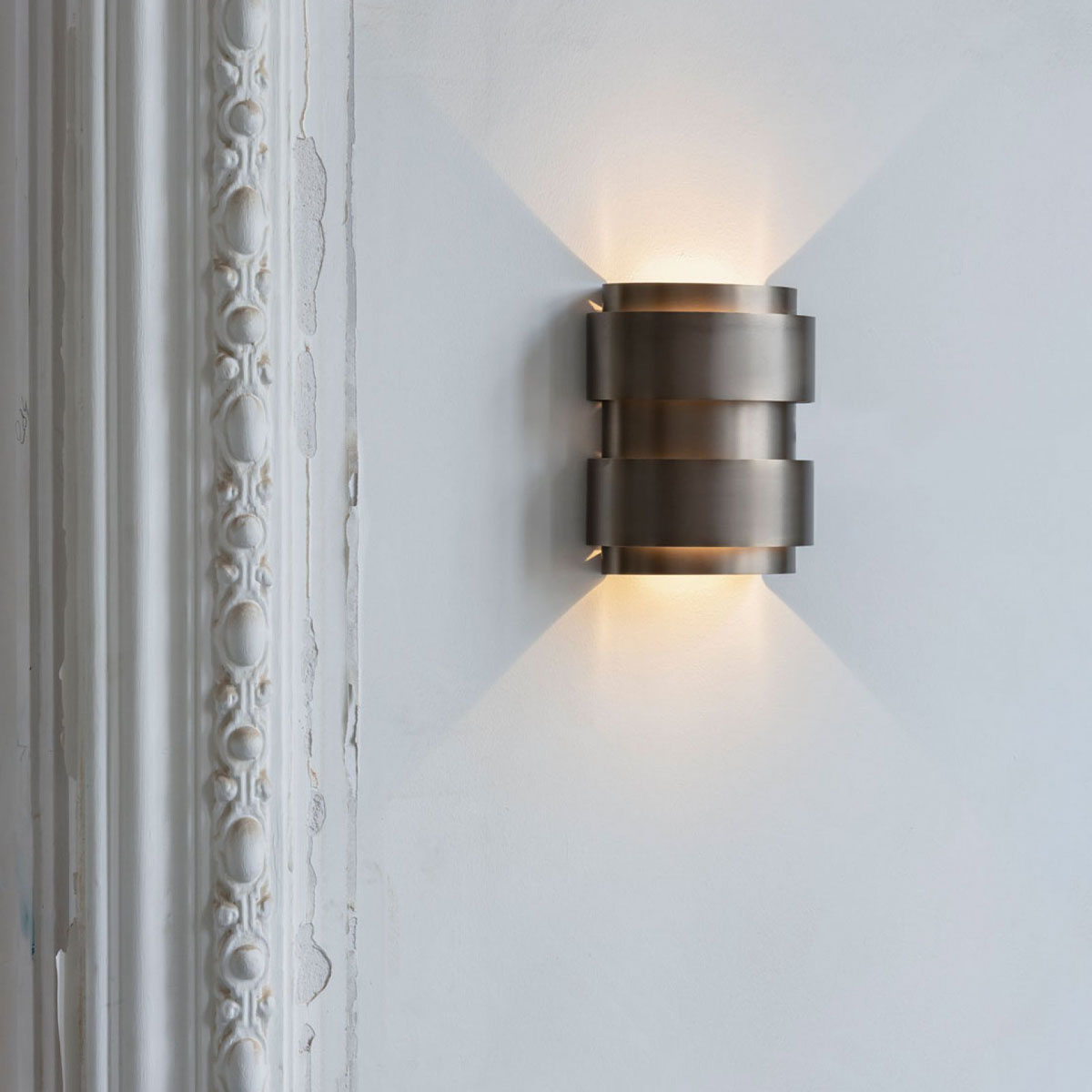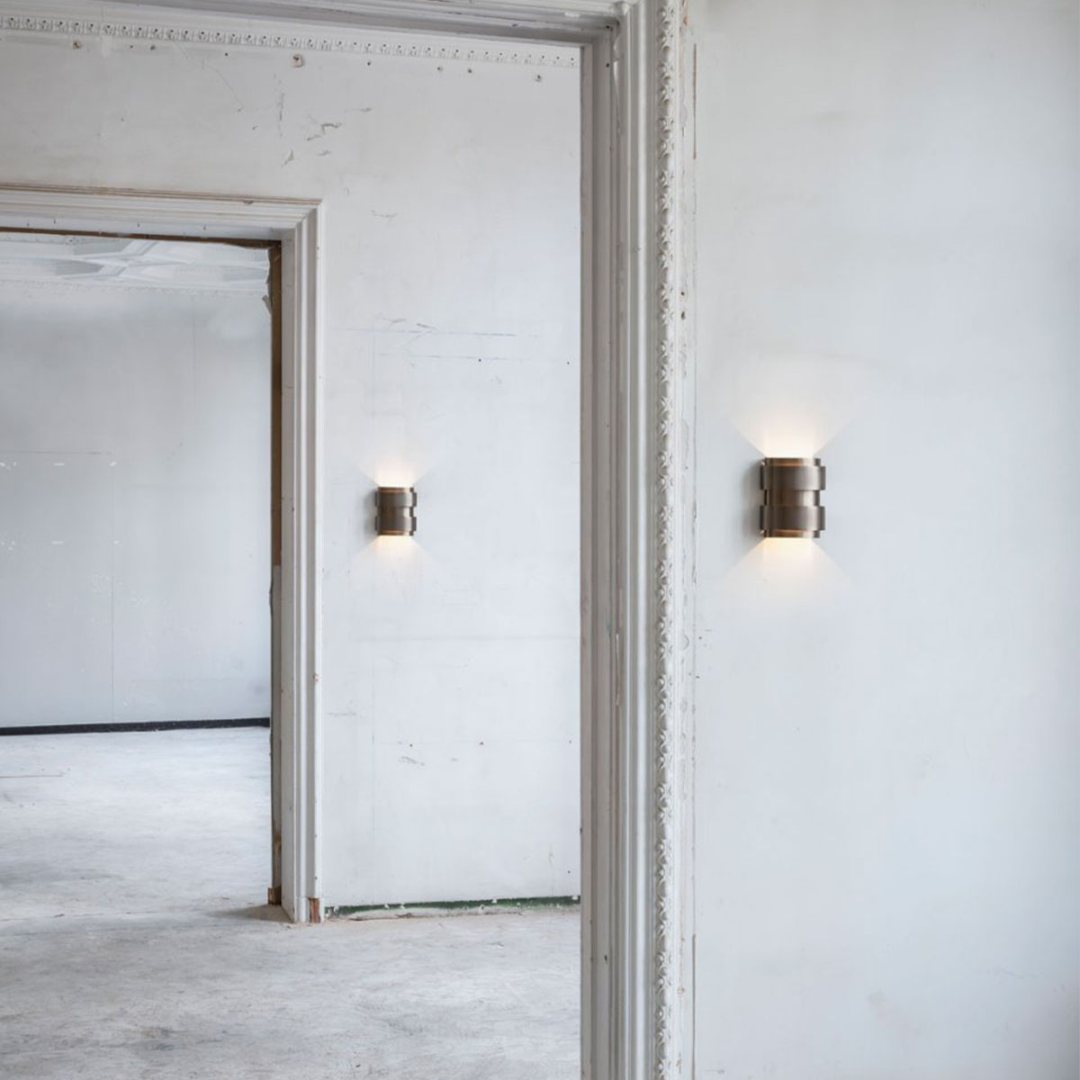 Verwandeln Sie Ihre Wand in ein Kunstwerk mit den Lichtebenen von Band-Oh! Diese erzeugen auf der installierten Oberfläche ein Gefühl von Tiefe. Das Licht strahlt nicht nur auf die Wand und erzeugt einen V-förmigen Lichteffekt von unten nach oben, sondern erzeugt auch ein Spiel aus Licht und Schatten auf der Leuchte selbst. Das Design von Band-Oh! besteht aus mehreren übereinander liegenden Schichten. Durch die Überlagerung von zwei Schichten wird die Lichtquelle abgeschirmt, während offene Bereiche Raum für reflektiertes Licht lassen. Das Ergebnis ist ein sanftes Schimmern des Lichts auf der inneren Schicht von Band-Oh!, das die optische Illusion erzeugt, dass die äußere Schicht frei schwebt. Die doppelte Ausführung in zwei Schwarztönen - strukturiertes Mattschwarz und glänzendes Klavierlack-Schwarz - verstärkt das Gefühl der Überlagerung noch weiter. Die Ausführung in gebürsteter Altbronze hingegen erhält durch den sanften Schein, der sie erhellt, eine zusätzliche Ebene der Tiefe.