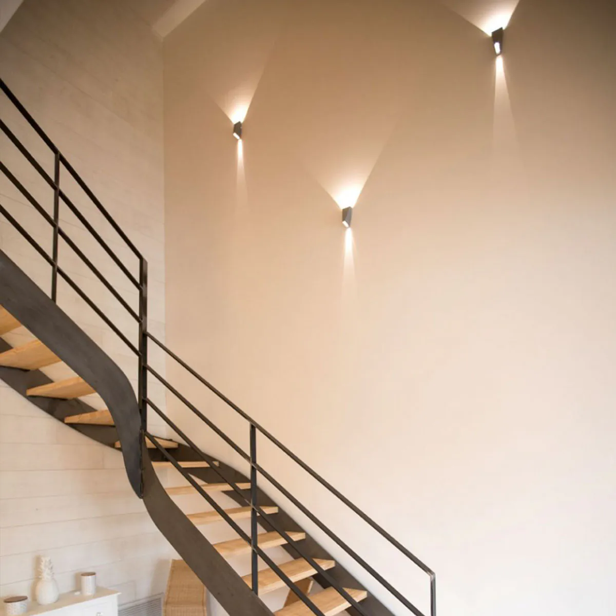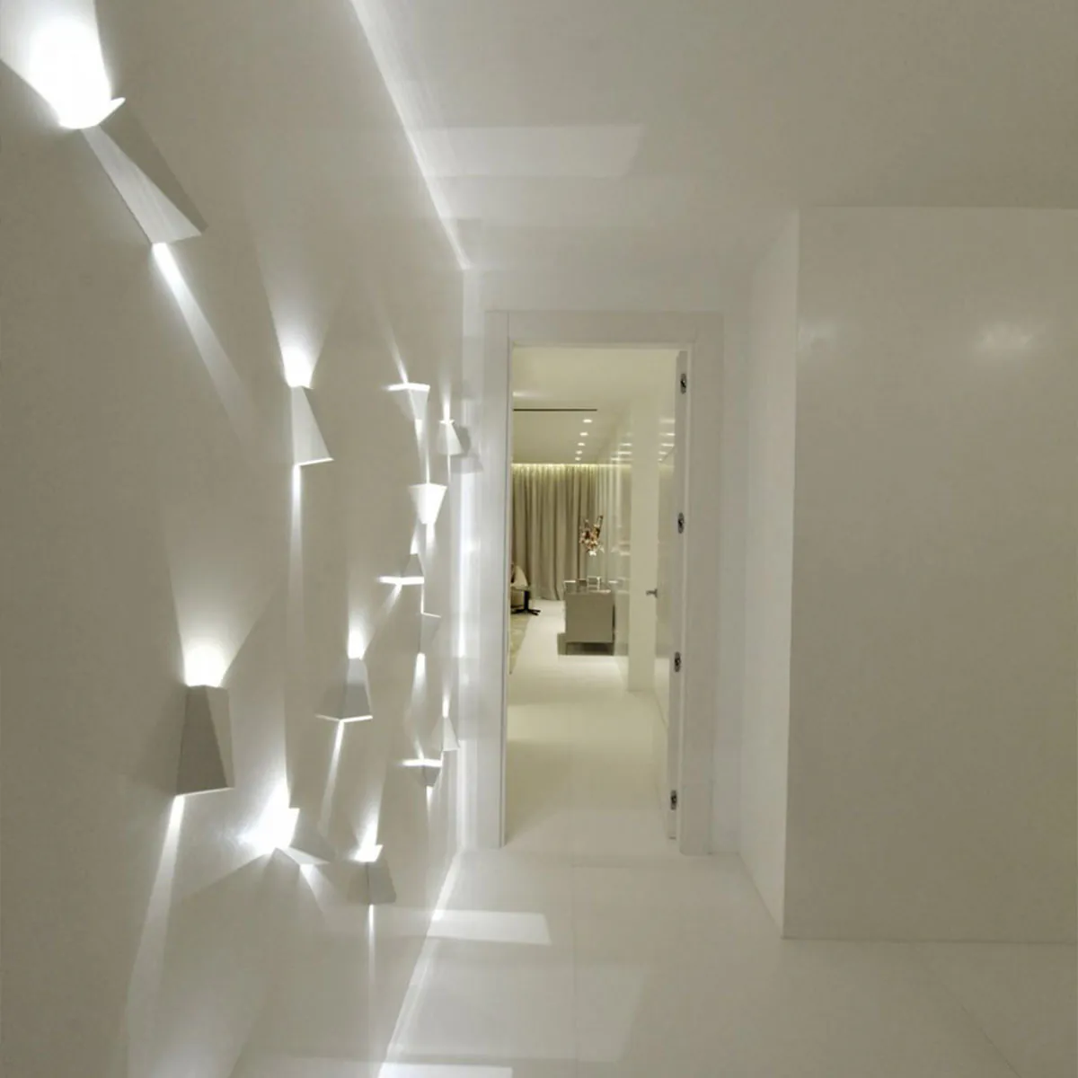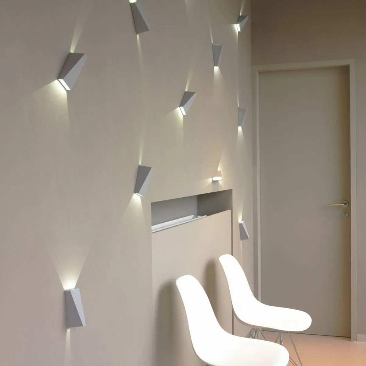 Mit dieser Leuchte können Sie ein ansprechendes Lichtspiel erzeugen und haben gleichzeitig eine breite Palette an Gestaltungsmöglichkeiten. Sie können zum Beispiel eine auffällige oder kunstvolle Lichtkomposition entwerfen, indem Sie mehrere Leuchten kombinieren. Außerdem können Sie die Lichtfarbe auswählen: Warmweiß, Kühlweiß oder Hellblau. Der Leuchtenkörper selbst, der halb eingebaut und halb aufgebaut ist, ist in den Farben Alugrau oder Weiß erhältlich.