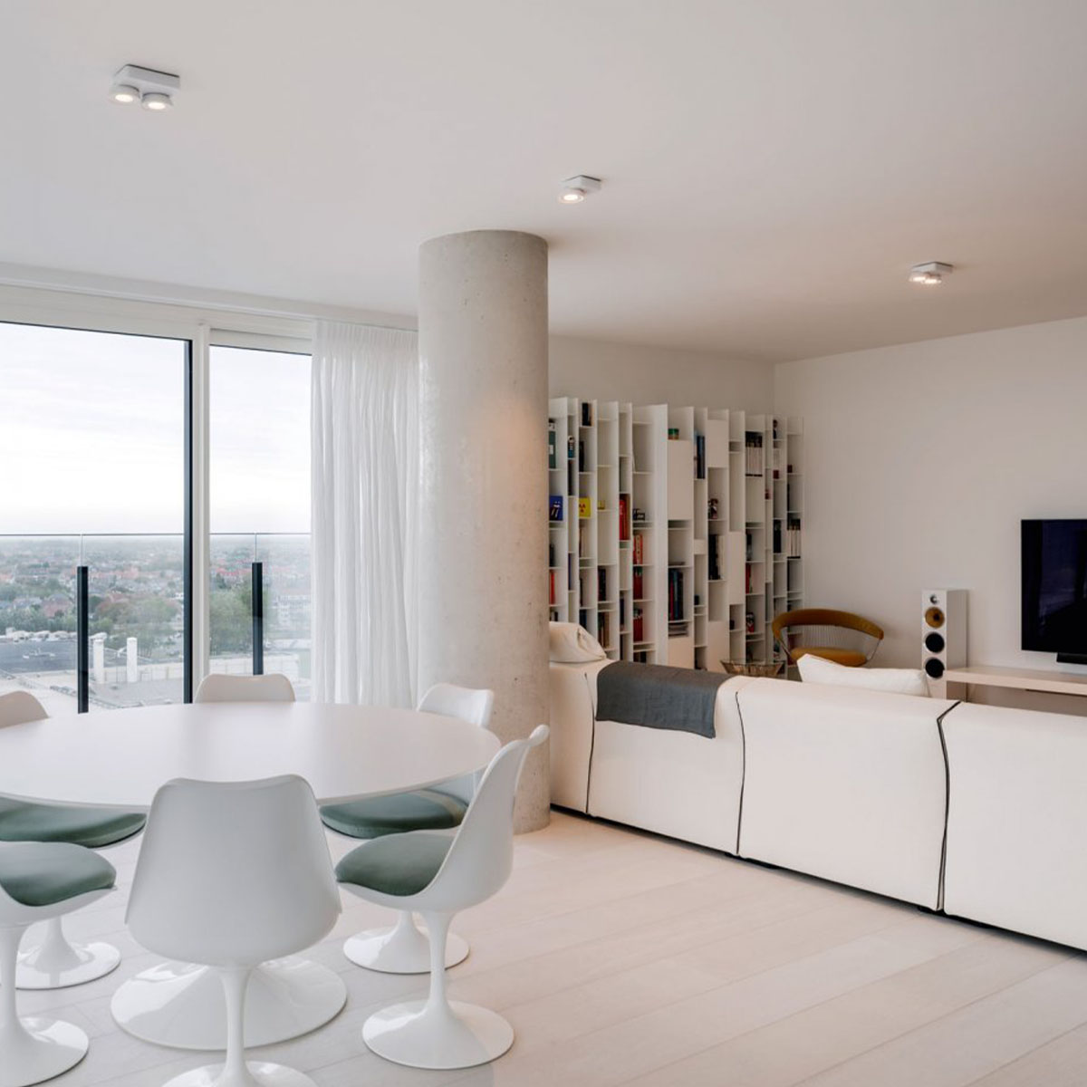 Die TWEETER definiert die Flexibilität von Leuchten neu, sowohl in Bezug auf Bewegung als auch Anwendungsmöglichkeiten. Ein Klassiker in der Gestaltung der Zukunft. Mit der TWEETER haben wir das patentierte Ex-centric Rotation System (ERS) eingeführt. Dieses System zeichnet sich durch eine asymmetrische Gelenkverbindung aus, die eine extrem einfache Dreh- und Neigungsmöglichkeit ermöglicht, und das alles in einer einzigen fließenden Bewegung. Die Verwendung des ERS verbessert nicht nur die Beweglichkeit des Leuchtenkörpers, sondern ermöglicht auch moderne Möglichkeiten der Lichtgestaltung. Der Drehmechanismus wurde so entwickelt, dass der Lichtstrahl nicht abgeschnitten, sondern effizient genutzt wird und einen beeindruckenden Wall-Washing-Effekt erzeugt. Das Doppelschalen-Design verhindert das Aussehen der freiliegenden Deckenfläche, während die flexible Innenschale individuell an die Beleuchtungsanforderungen angepasst werden kann. Das finale Detail der Leuchte wird durch das brandneue Oreo-Prinzip vervollständigt, eine subtile Lichthülle um die mittig platzierte LED, die der Beleuchtung eine zusätzliche ästhetische Dimension verleiht. Die TWEETER On besticht durch ihr durchdachtes Design bis ins kleinste Detail. Die TWEETER On, erhältlich mit Einzel- oder Doppelstrahlern, ist ausschließlich mit dem einzigartigen Reo-LED-Array von Delta Light erhältlich. Dieses Array entspricht einer 50 Watt starken Halogenlampe und verbraucht weniger als 12 Watt, während es ein helles, warmes Licht erzeugt. Die Schale sowohl der Einbau- als auch der Aufbauversion ist für eine optimale Kühlung ausgelegt, was die Lebensdauer der LEDs auf beeindruckende 50.000 Betriebsstunden verlängert.