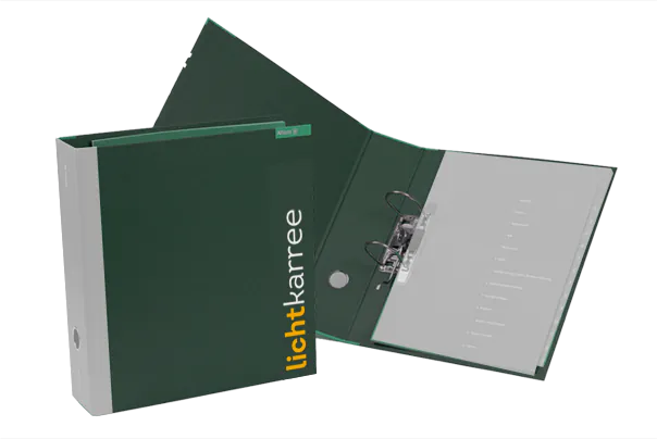 Es ist soweit: Die Dokumentation des Lichtkonzepts händigen wir Ihnen mit den technischen Daten der Leuchten in einer Mappe aus.
