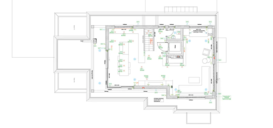 Steht das finale Lichtkonzept, erarbeiten wir für die handwerklichen Gewerke die Ausführungspläne mit Bemaßung. Für dekorative Leuchten konzeptionieren wir einen separaten Leuchtenplan.