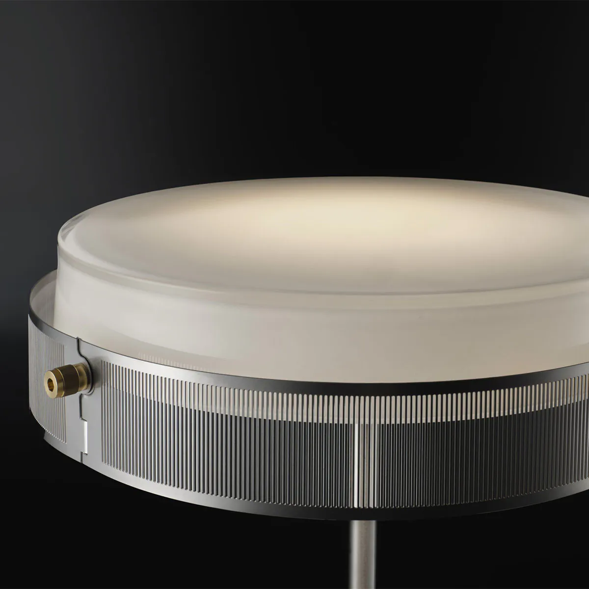 Anima, die erste Zusammenarbeit mit dem renommierten Architekten Jean-Michel Wilmotte, präsentiert eine moderne Interpretation der klassischen Abat-Jour-Tischleuchte. Dieser zeitlose Klassiker wurde überarbeitet und aktualisiert. Anima besticht durch die Verwendung verschiedener Materialien und Verfahren, die ihre Einzigartigkeit unterstreichen. Der Hauptkörper besteht aus gedrehtem Aluminium und beherbergt ein LED-Modul mit spezieller Optik. Das Opalglas sorgt für eine sanfte Streuung und Reflexion des Lichts, wodurch eine angenehme Atmosphäre entsteht. Der äußere Rahmen besteht aus vier Elementen aus fotogeätztem Edelstahl, während der Stiel aus gebürstetem Edelstahl das farbige Stoffkabel beherbergt. Der Sockel aus transparentem Glas wird von einem farbigen Metallring umrahmt, was ein harmonisches Gesamtbild schafft. Kein Detail wurde dem Zufall überlassen: Der spezielle Dimmer aus gedrehtem Aluminium passt perfekt zur Metalloberfläche der Leuchte. Das Ergebnis ist ein einzigartiges Produkt, das das Design eines renommierten Architekten mit der Qualität und der Liebe zum Detail von Lumina verbindet.