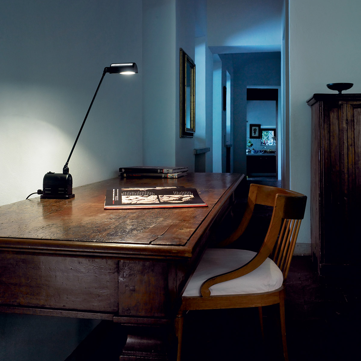 Die Daphinette ist eine freistehende Lampe, die für die Beleuchtung und Akzentuierung kleiner Räume entwickelt wurde. Dank ihrer kompakten Abmessungen und ausgewogenen Proportionen ist sie äußerst vielseitig einsetzbar. Mit ihrem einzigen Segmentarm und dem kompakten Fuß eignet sie sich perfekt für Schreibtische, Couchtische oder kleine Regale.