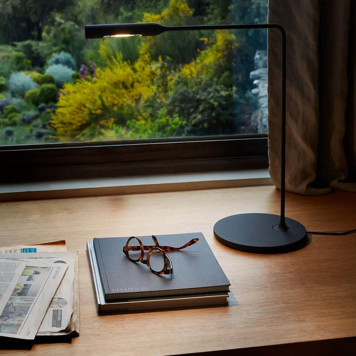 Die Flo Desk, die erste Lampe dieser Familie, verkörpert die Essenz von Lumina: "viel Licht, nicht viel Lampe". Ihr Design ist eine Huldigung an das Wesentliche: Der schlanke zylindrische Kopf und der leichte, aber dennoch robuste Aluminiumkörper werden durch einen runden Aluminiumfuß ausgeglichen. Diese Lampe ist ideal für großzügige Räume, in denen Platz eine wichtige Rolle spielt und das Licht auf eine ebene Fläche gerichtet werden muss. Sie eignet sich perfekt für Smart-Working oder einfach zum Lesen eines Buches.