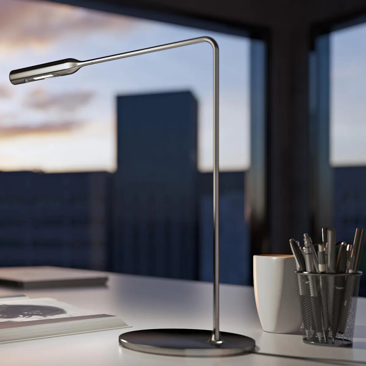 Die Flo Desk, die erste Lampe dieser Familie, verkörpert die Essenz von Lumina: "viel Licht, nicht viel Lampe". Ihr Design ist eine Huldigung an das Wesentliche: Der schlanke zylindrische Kopf und der leichte, aber dennoch robuste Aluminiumkörper werden durch einen runden Aluminiumfuß ausgeglichen. Diese Lampe ist ideal für großzügige Räume, in denen Platz eine wichtige Rolle spielt und das Licht auf eine ebene Fläche gerichtet werden muss. Sie eignet sich perfekt für Smart-Working oder einfach zum Lesen eines Buches.