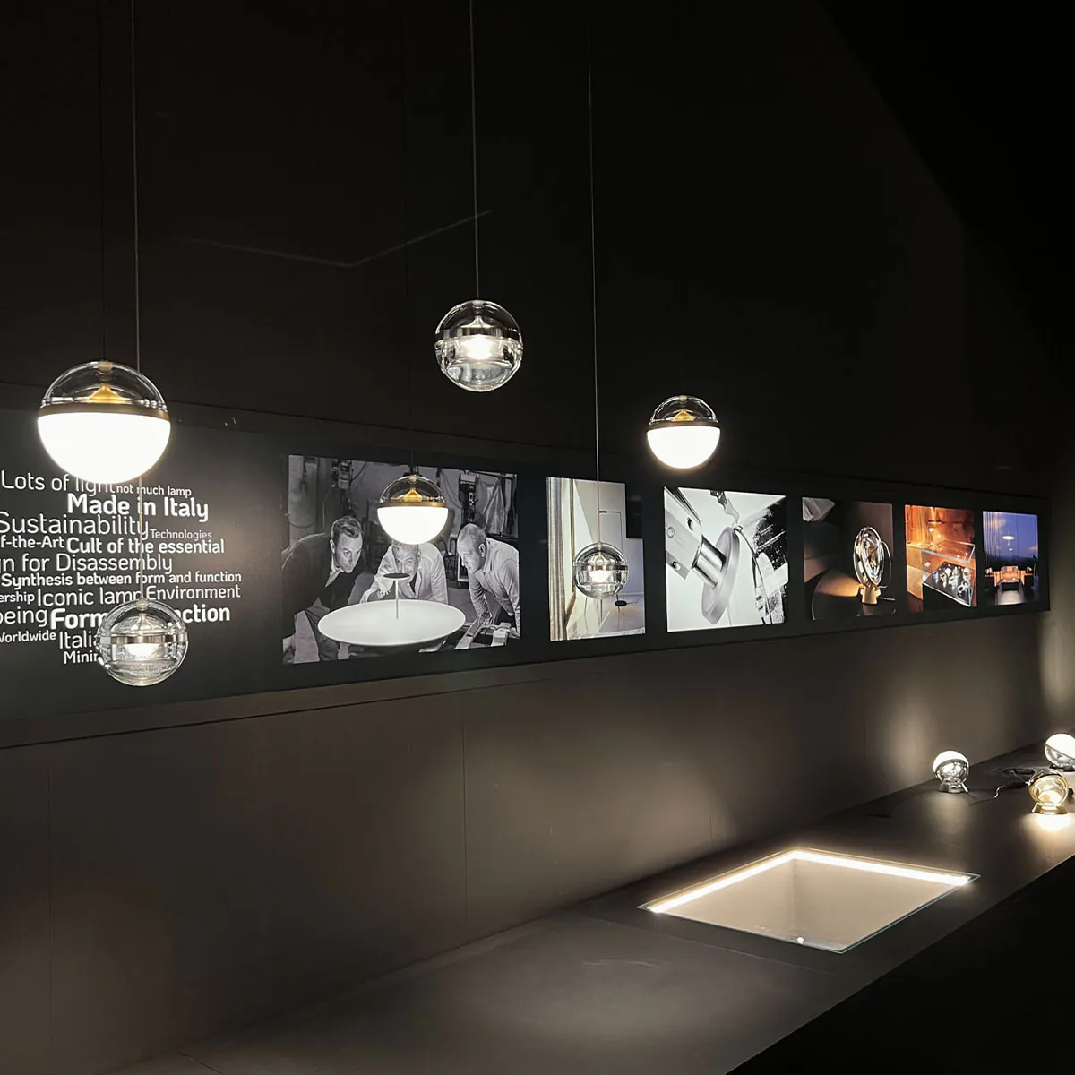 Die Leuchte benötigt zusätzlich einen Baldachin den Sie unter Zubehör finden. Es sind viele Konfigurationen und unterschiedliche Dimmverfahren möglich. Gerne sind wir Ihnen dabei behilflich.