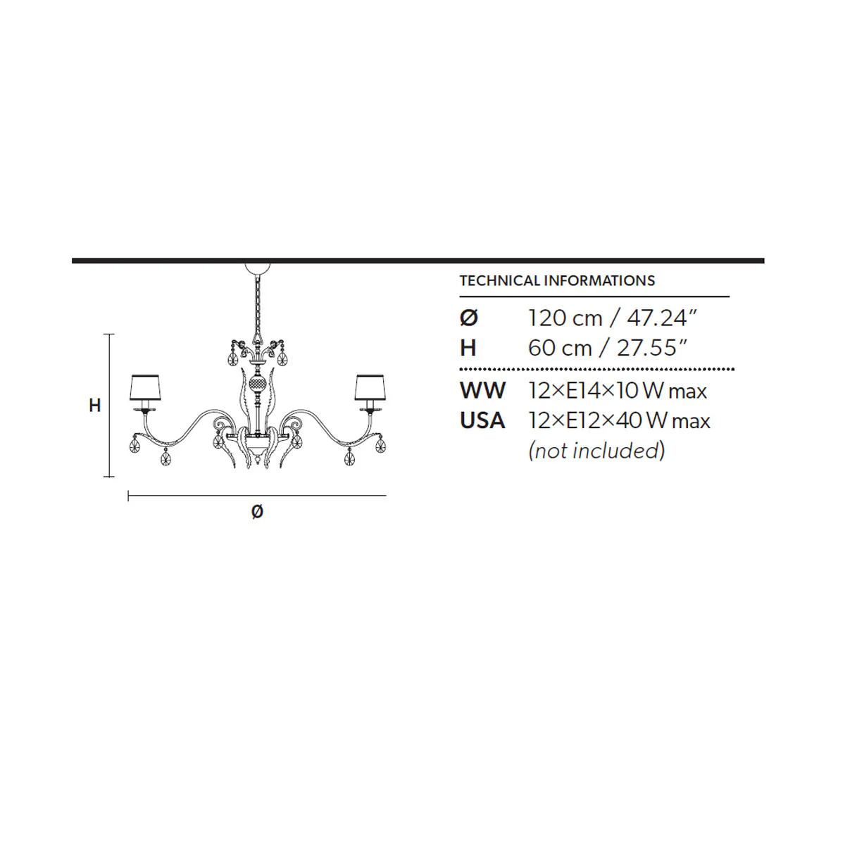 | Abmessungen: | Ø: 120 cm, H: 60 cm, Pendelhöhe max. 50 cm |