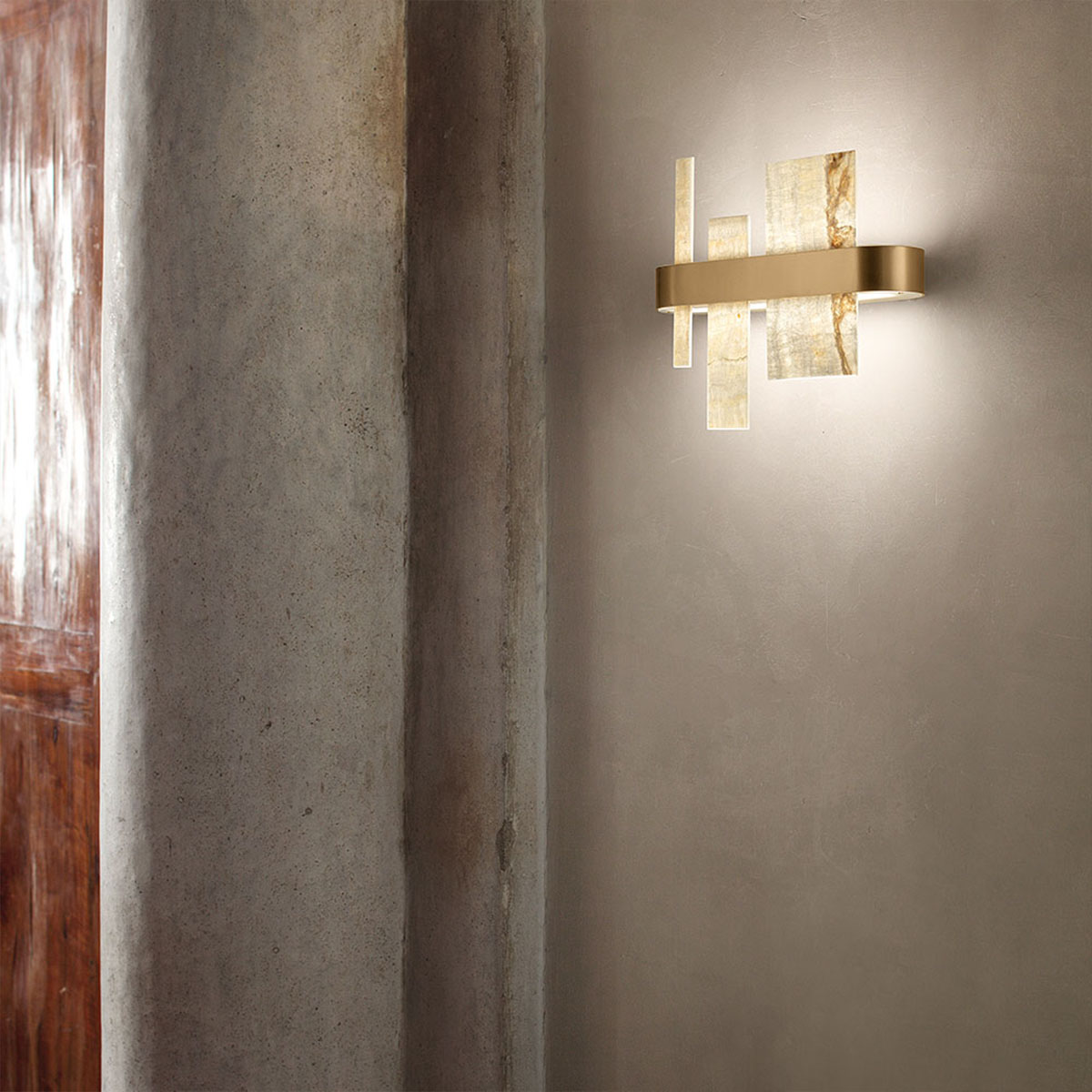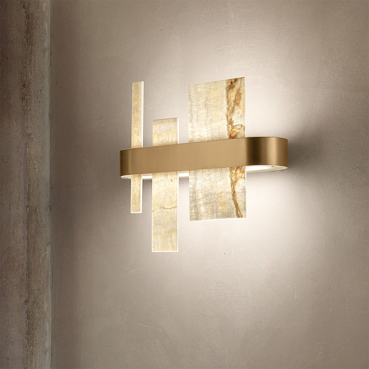 Masiero Honicé A37 Wandleuchte Onyx Stein, Gold matt lackiert, L: 37 cm