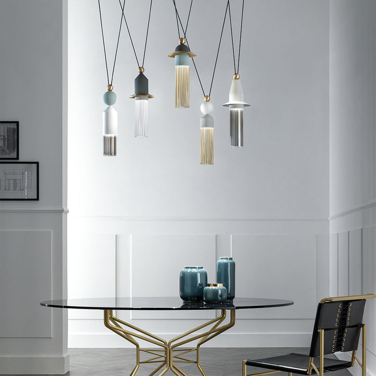 Die Nappe-Kollektion ist ein Ausdruck der engen Verbundenheit des Unternehmens mit der lokalen Umgebung. Sie lässt sich von den "Nappine" (Quasten) inspirieren, die typischerweise dazu dienten, Vorhänge zu schließen und venezianische Salons in vergangenen Zeiten zu schmücken. Durch das Zerlegen und Vereinfachen dieser dekorativen Objekte wurden zehn verschiedene Quastenformen stilisiert.