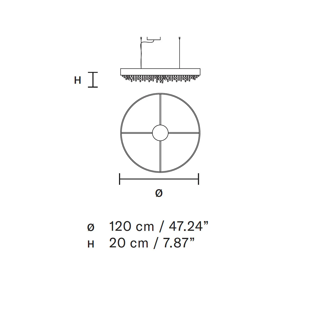 | Abmessungen: | Ø: 120 cm, H: 20 cm, Pendelhöhe max. 150 cm |