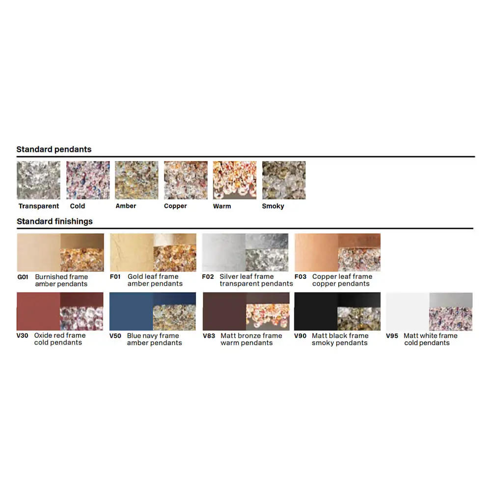 Ein Designjuwel, das aus einer Synthese aus Erfahrung und Kreativität entstanden ist. Vor mehr als einem Jahrzehnt vom kreativen Atelier von Masiero entworfen, vereint Olà den Kontrast zwischen einem schlichten Metallrahmen und einer luxuriösen Kaskade von Anhängern und ist zu einem Symbol für Masiero geworden.
