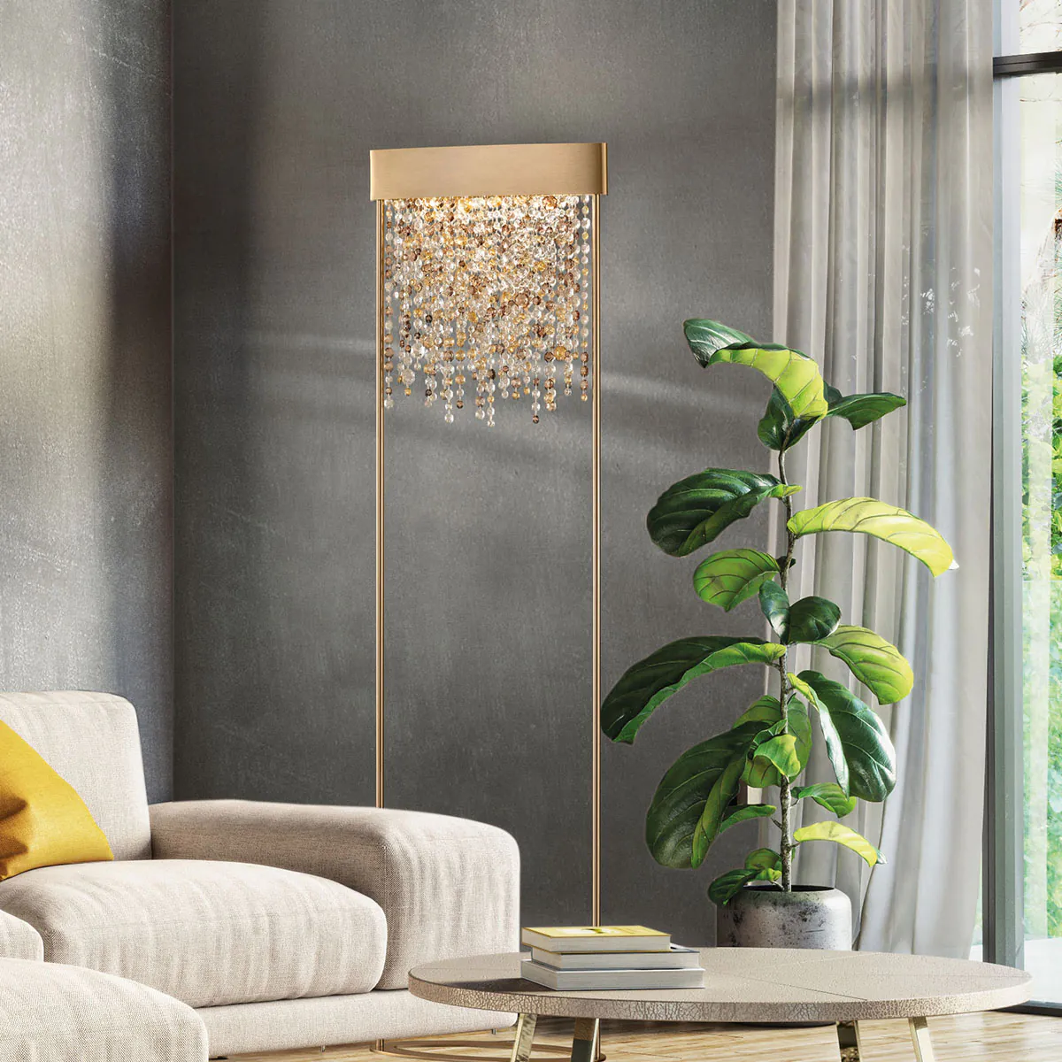 Ein Designjuwel, das aus einer Synthese aus Erfahrung und Kreativität entstanden ist. Vor mehr als einem Jahrzehnt vom kreativen Atelier von Masiero entworfen, vereint Olà den Kontrast zwischen einem schlichten Metallrahmen und einer luxuriösen Kaskade von Anhängern und ist zu einem Symbol für Masiero geworden.