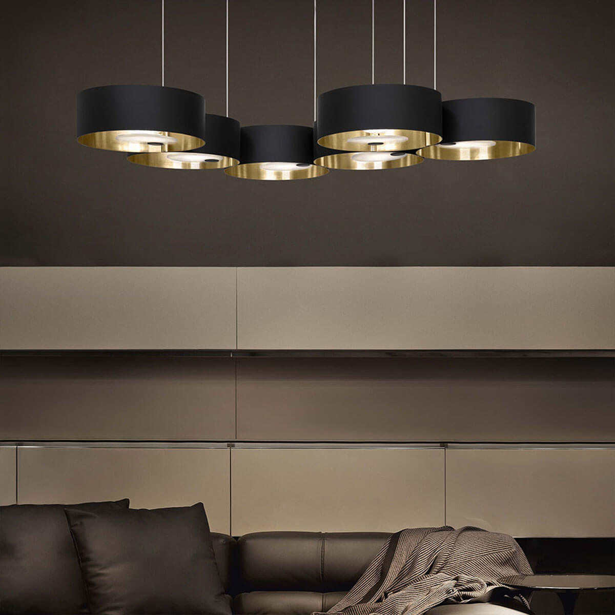 Masiero Sound OR6 Pendelleuchte, L: 120 cm, B: 80 cm, 6-flammig, Messing gebürstet & Schwarz matt, LED-Modul