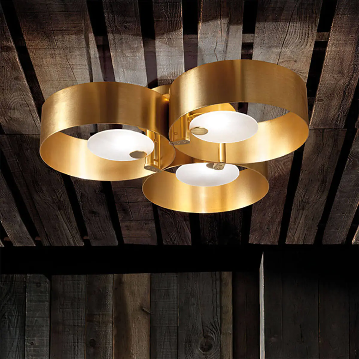 Masiero Sound PL3 Deckenleuchte, L: 60 cm, 3-flammig, Messing gebürstet & Schwarz matt, Retrofit