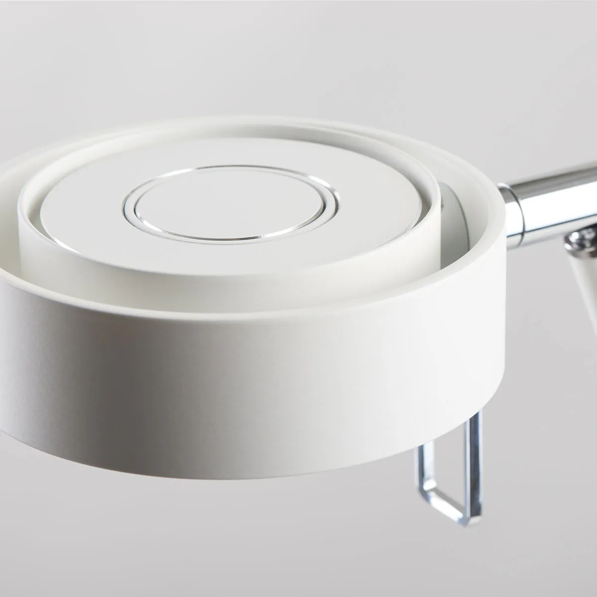 In ihrer zweiten Generation strahlt Pure in purer Eleganz mit einem neuen Lichtkopf, der nicht nur eine leistungsfähigere LED, sondern auch ein klareres und ruhigeres Design aufweist. Dank ihrer speziellen Bauweise erreicht sie eine herausragende Kühlleistung und sorgt mit ihrem breiten Abstrahlwinkel dafür, dass selbst Bereiche direkt über der Arbeitsfläche gleichmäßig beleuchtet werden. Besonders entwickelte, verchromte Gelenke ermöglichen maximale Flexibilität. Auch nach langen Betriebszeiten bleibt der Ring um den inneren Leuchtenkopf angenehm kühl, wodurch der Lichtkegel mithilfe des verchromten Spezialgriffs leicht einzustellen ist. Ein dimmbarer Tastschalter mit Memoryfunktion ist im oberen Bereich des Leuchtenstabes integriert. Der Kopf der Leuchte kann um 360° gedreht und um 90° geschwenkt werden.