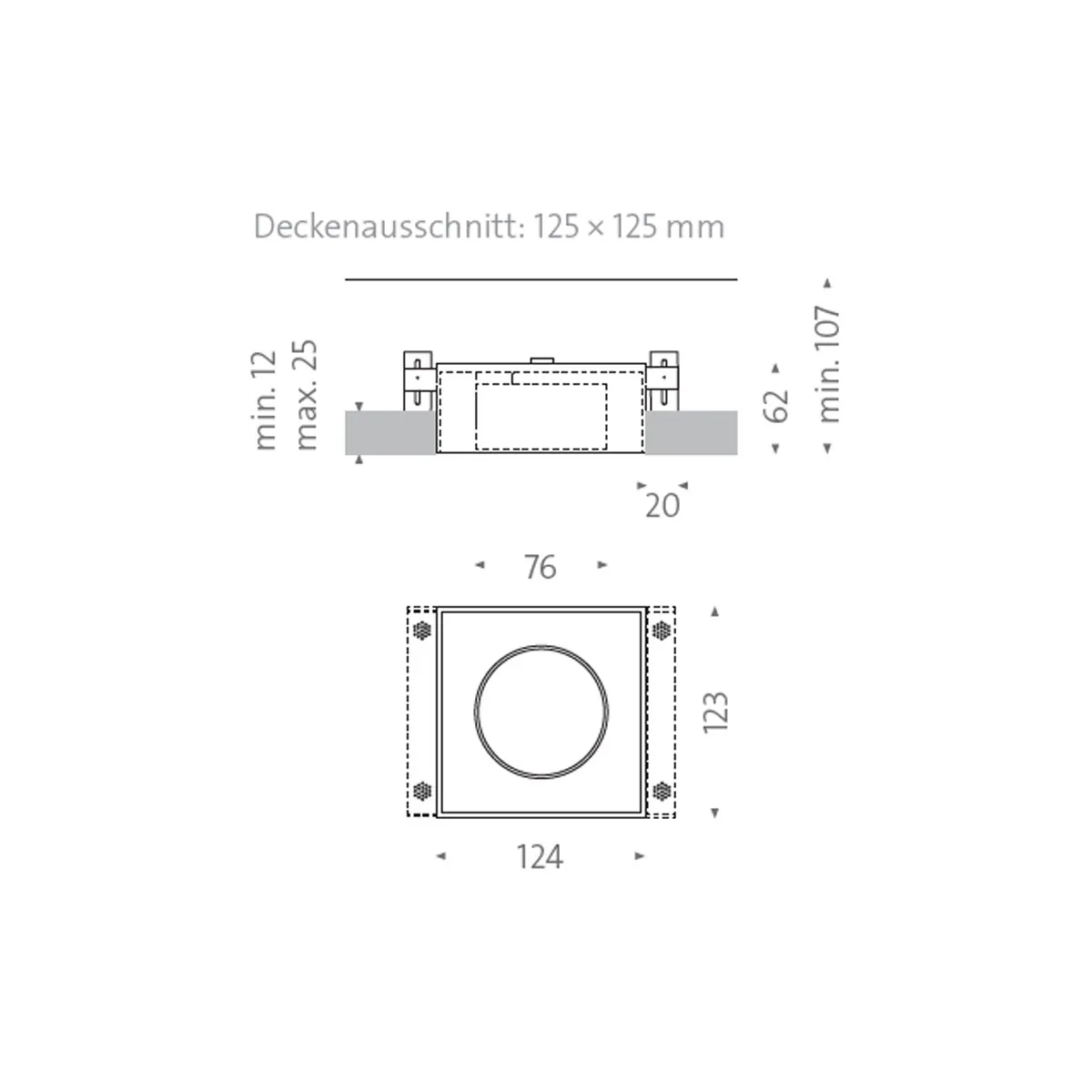 | Deckenausschnitt: | 12,5 x 12,5 cm |