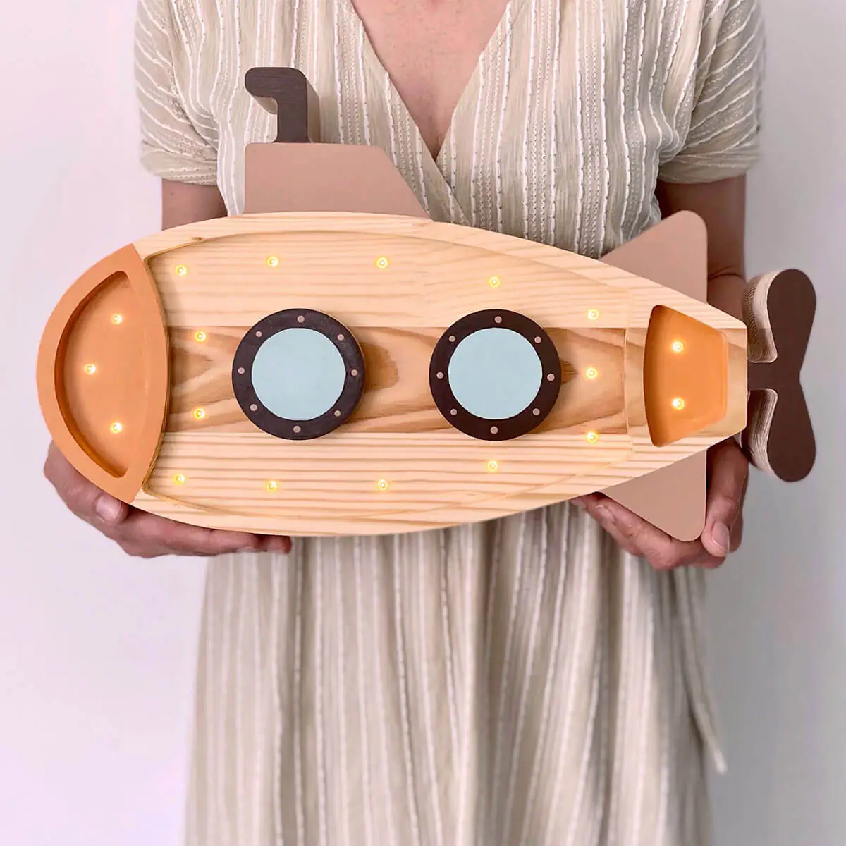 Mimpi Kinder Nachtlicht U-Boot, Holz, orange, handgemacht