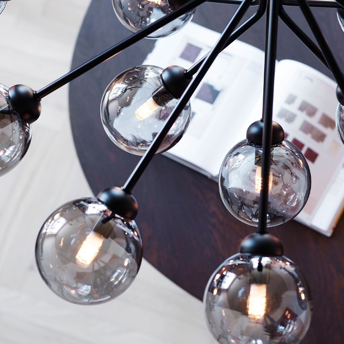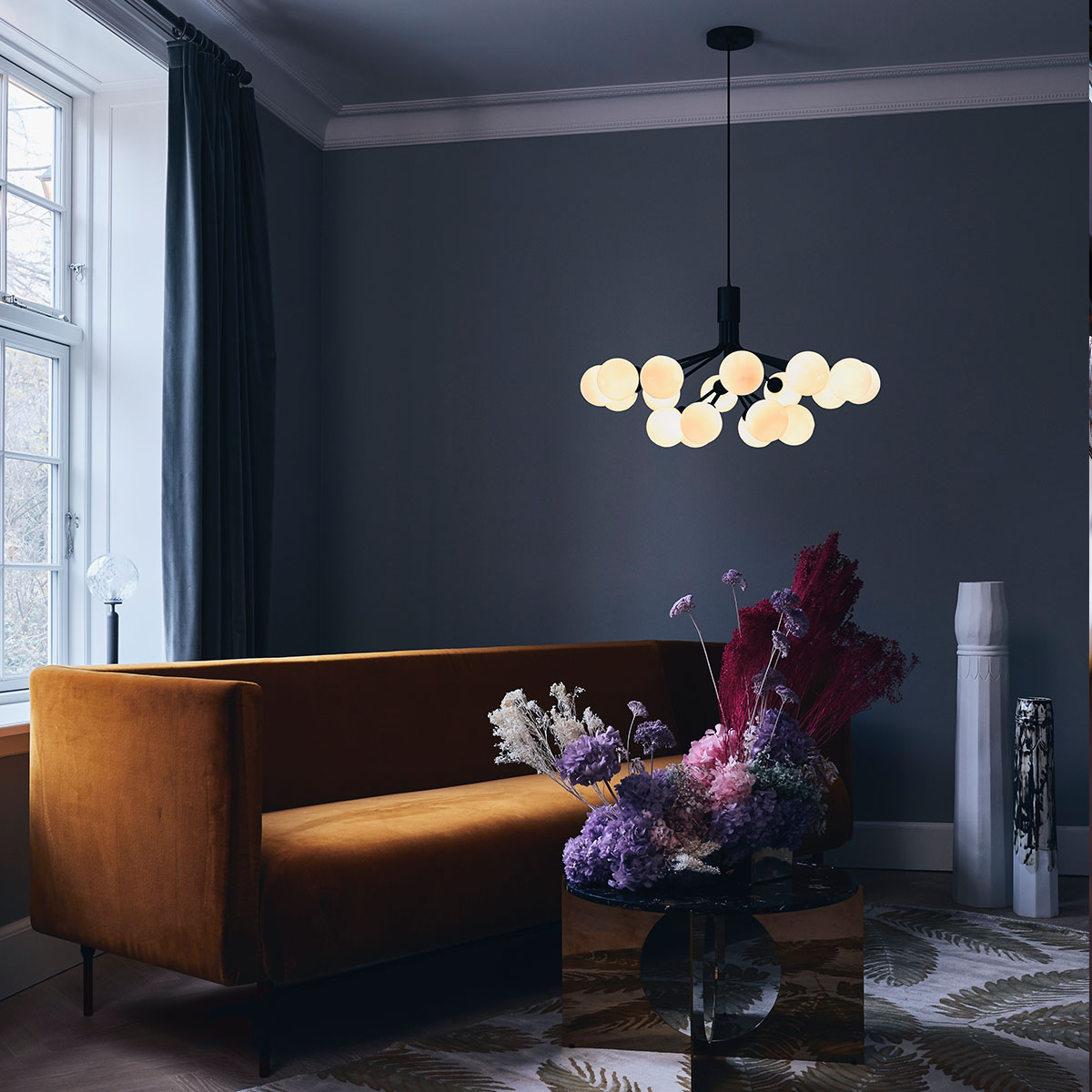 Die Apiales-Kollektion ist von Blumen und Kindheitserinnerungen inspiriert. Sie umfasst Einzelpendelleuchten, Wandlampen und Kronleuchter mit 6, 9 oder 18 mundgeblasenen Glasgloben. Die Arme des Kronleuchters entfalten sich wie Blumenstängel aus einem speziell gefertigten Baldachin. Die Kollektion wird sorgfältig hergestellt und zeichnet sich durch ihre fehlenden sichtbaren Schrauben oder Schweißnähte aus. Dank der verschiedenen Größen und Varianten ist die Kollektion vielseitig einsetzbar und passt sowohl in private Wohnräume als auch in öffentliche Bereiche.