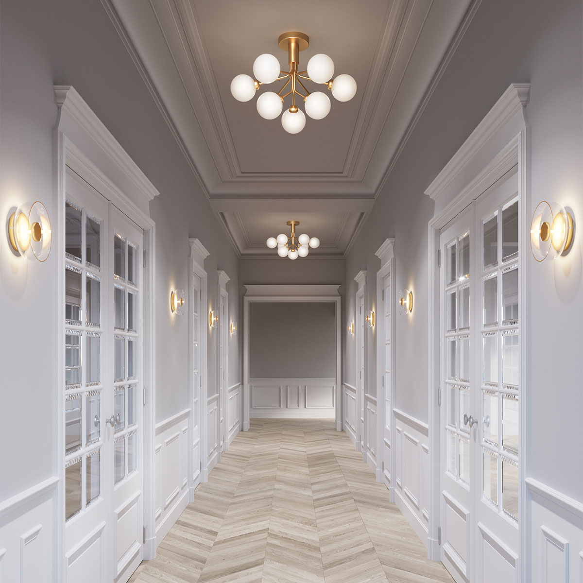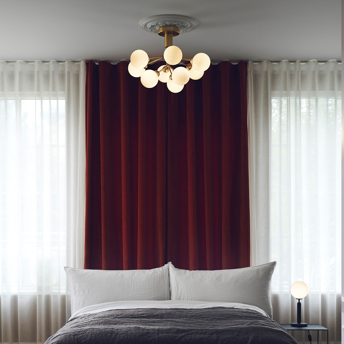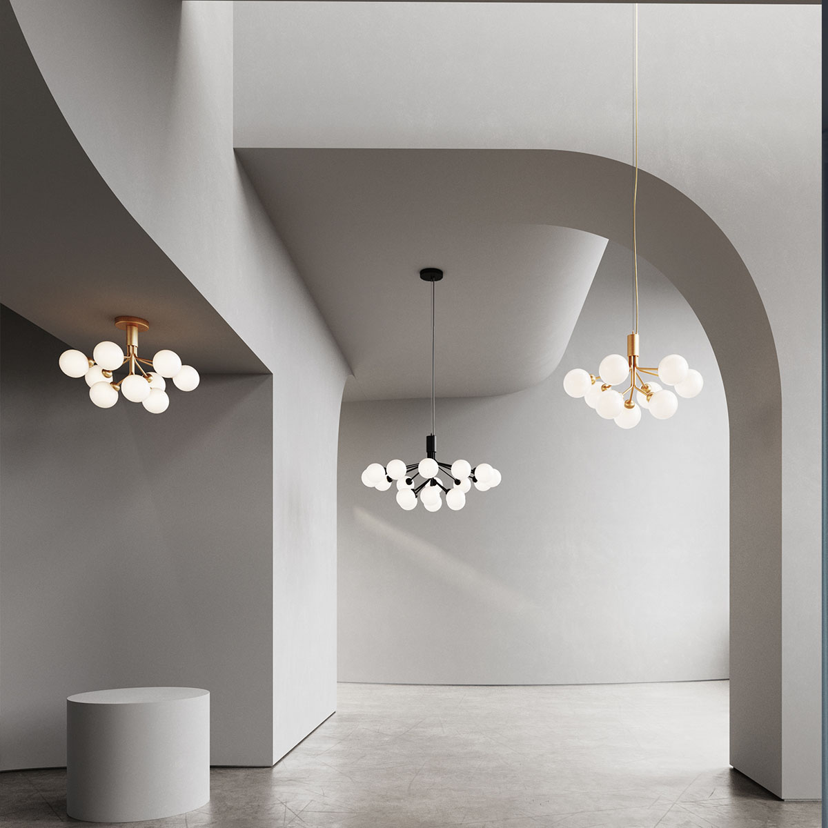 Die Apiales-Kollektion ist von Blumen und Kindheitserinnerungen inspiriert. Sie umfasst Einzelpendelleuchten, Wandlampen und Kronleuchter mit 6, 9 oder 18 mundgeblasenen Glasgloben. Die Arme des Kronleuchters entfalten sich wie Blumenstängel aus einem speziell gefertigten Baldachin. Die Kollektion wird sorgfältig hergestellt und zeichnet sich durch ihre fehlenden sichtbaren Schrauben oder Schweißnähte aus. Dank der verschiedenen Größen und Varianten ist die Kollektion vielseitig einsetzbar und passt sowohl in private Wohnräume als auch in öffentliche Bereiche.