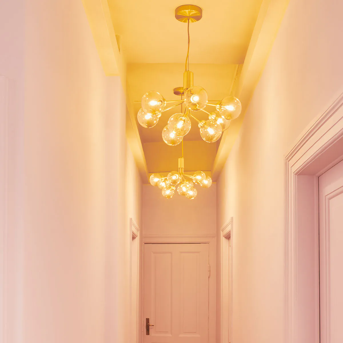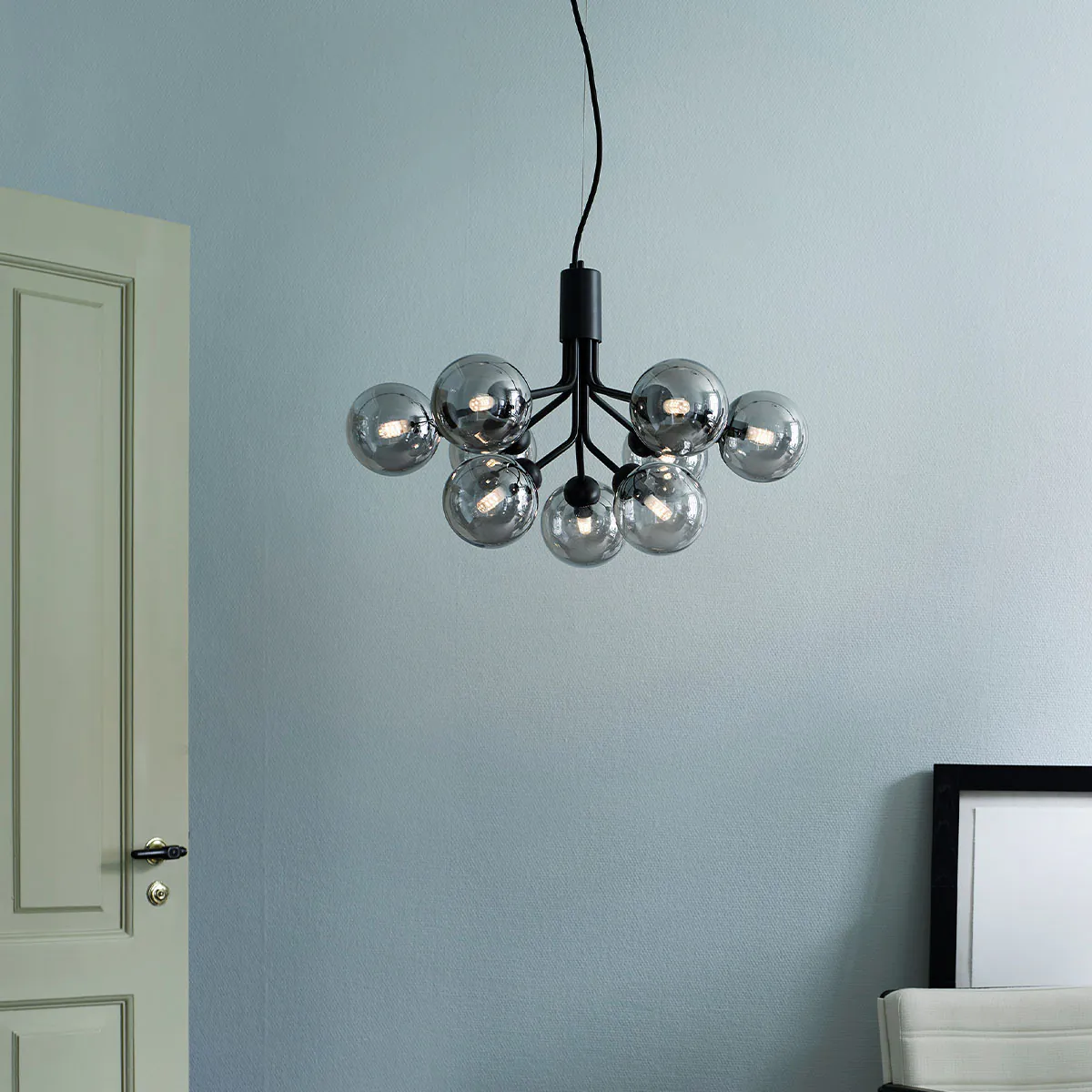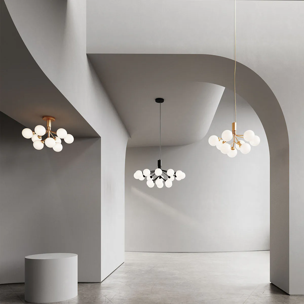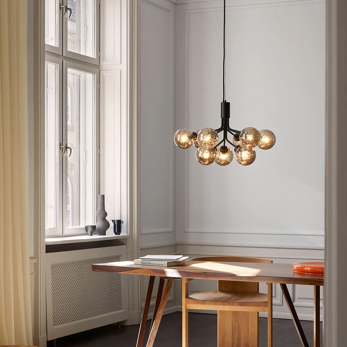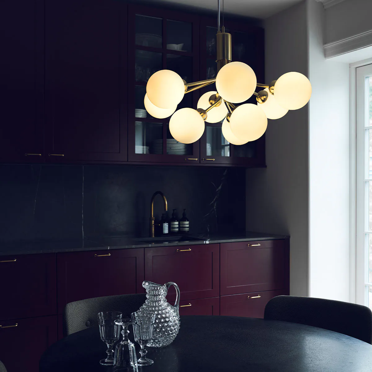 Die Apiales-Kollektion ist von Blumen und Kindheitserinnerungen inspiriert. Sie umfasst Einzelpendelleuchten, Wandlampen und Kronleuchter mit 6, 9 oder 18 mundgeblasenen Glasgloben. Die Arme des Kronleuchters entfalten sich wie Blumenstängel aus einem speziell gefertigten Baldachin. Die Kollektion wird sorgfältig hergestellt und zeichnet sich durch ihre fehlenden sichtbaren Schrauben oder Schweißnähte aus. Dank der verschiedenen Größen und Varianten ist die Kollektion vielseitig einsetzbar und passt sowohl in private Wohnräume als auch in öffentliche Bereiche.