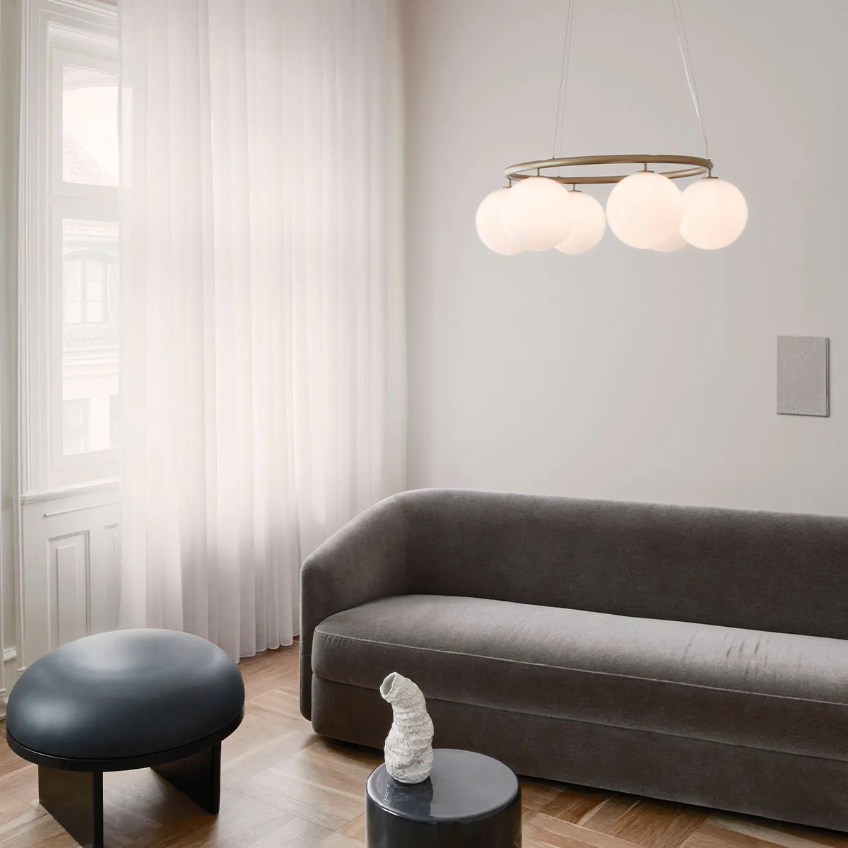 Die Beleuchtungskollektion Miira zeichnet sich durch ihr einfaches und zeitloses Design aus. Das sorgfältig mundgeblasene Glas und das hochwertig verarbeitete Metall verleihen der Kollektion Ausgeglichenheit und Tiefe im Ausdruck. Mit dem Kronleuchter als Zentrum erstreckt sich die Miira-Kollektion zu einer umfassenden Serie von Leuchten. Sie ist vielseitig einsetzbar und passt perfekt in verschiedene Umgebungen, von privaten Wohnungen bis hin zu größeren Innenraumdekorationen und Projekten.