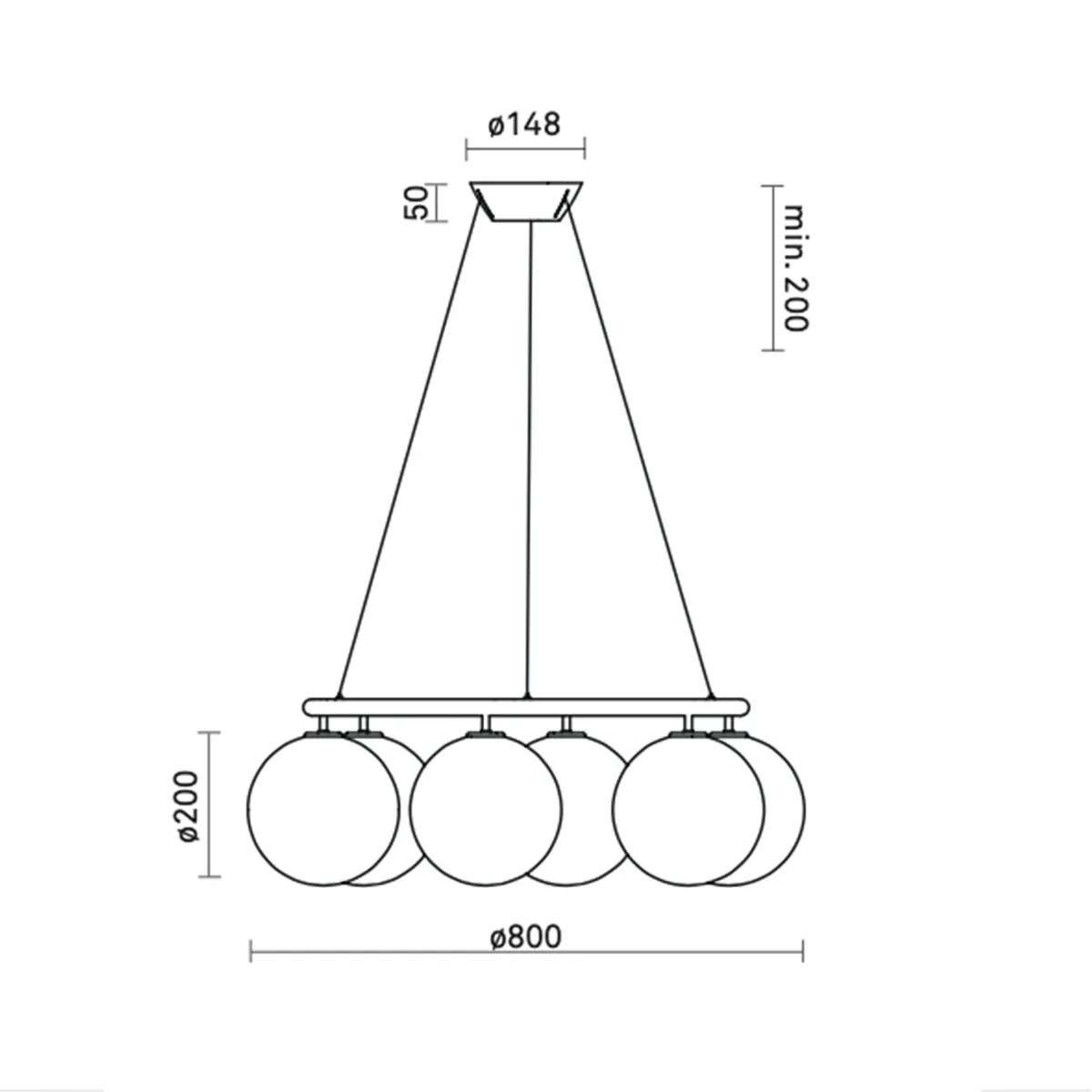 | Abmessungen: | Ø: 80 cm, H: 20 cm, Baldachin Ø: 14,8 cm, H: 5 cm, Pendelhöhe max: 250 cm |