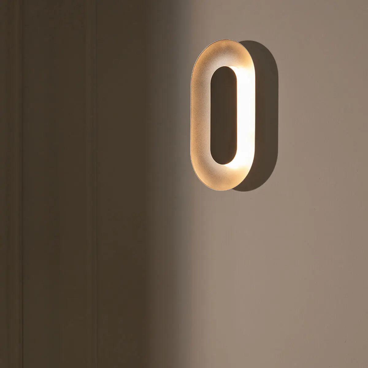 Sasi Small ist eine kleine Designer-Wandleuchte, die in Zusammenarbeit mit dem Niederländer Rick Tegelaar entstanden ist. Ein goldener, ovaler Aluminiumschirm mit satiniertem Finish bildet den Sockel, in der Mitte befindet sich eine kleinere Form mit hochglanzpoliertem Messingfinish. Der glänzende Spiegeleffekt erzeugt subtile Reflexionen und fungiert als Lampenschirm für das integrierte LED-Modul, das ein dezentes und indirektes Licht verbreitet. Verwenden Sie Sasi Small als dekorative Wandleuchte im Wohnzimmer, im Treppenhaus und im Flur.