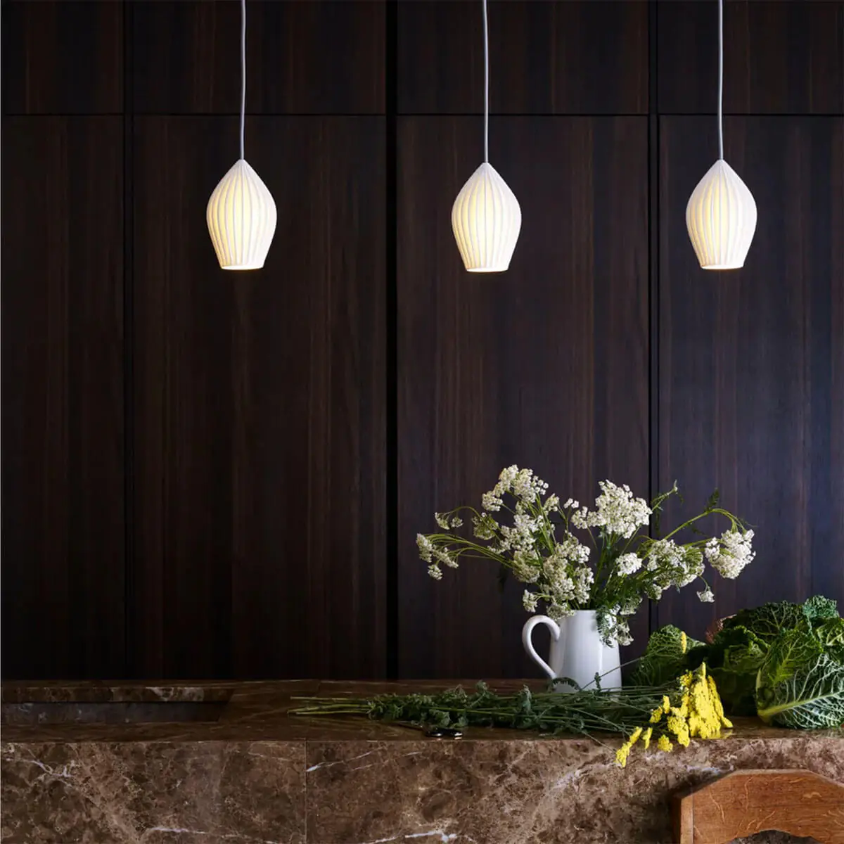 Die anmutige Original BTC Fin Pendelleuchte verleiht jedem Raum mit ihrem sanft geschwungenen und gerillten Schirm eine elegante Note. Im ausgeschalteten Zustand setzt die Keramik einen attraktiven Akzent, und sobald sie eingeschaltet wird, strahlt das Licht teilweise durch die weißen Wände des Schirms. Jeder Original BTC Fin Lampenschirm wird in Stoke-on-Trent sorgfältig von Hand gefertigt. Die Original BTC Fin Pendelleuchte ist in drei Größen erhältlich und wird durch eine passende Rosette (ebenfalls aus Bone China Porzellan) ergänzt.