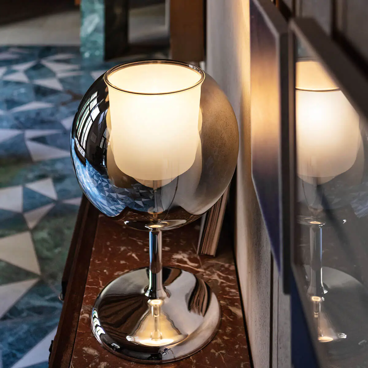 Glo ist das Herzstück unserer Kollektion, eine Glaskugel, die das Licht intensiv verstärkt und dabei ein faszinierendes Spiel von Reflexionen zwischen Lampe und Raum sowie zwischen den einzelnen Lampen erzeugt. Die reiche Farbpalette und die verschiedenen Dimensionen der Hängelampen laden zur kreativen Gestaltung ein.