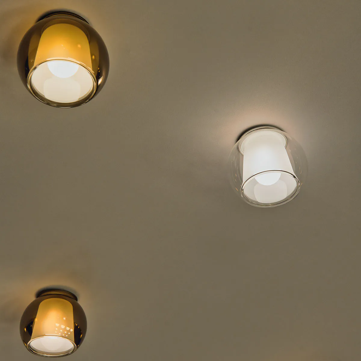Die Glo-Familie wächst um eine kleine, jedoch wesentliche Veränderung, die es ermöglicht, sie an der Decke zu montieren: Ein Schnitt in der Kugel, der ihre Wiedererkennbarkeit nicht beeinträchtigt, sondern ihr eine innovative Perspektive verleiht. So entsteht eine neue Kollektion, die das ikonische Glo erneuert und bereichert, dabei aber das familiäre Gefühl bewahrt.