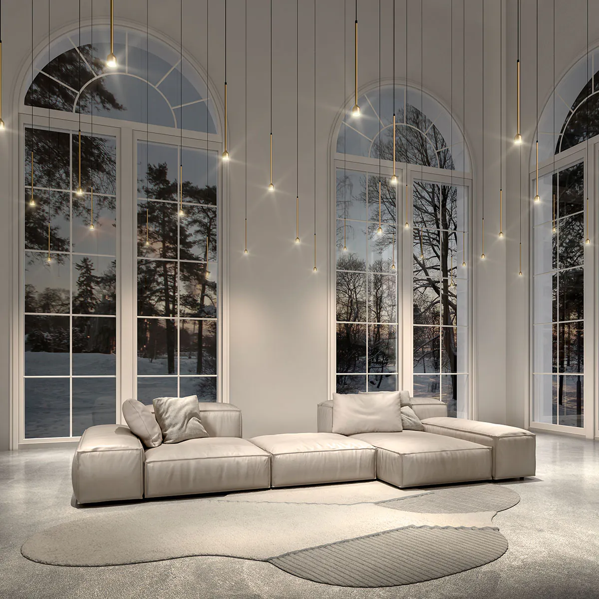 Als Weiterentwicklung der Kollektionen Wonder und Storm konzipiert, ist Hail eine Pendellampe, die gerichtetes Licht nach unten abgibt. Ein langer und essentieller Metallstiel öffnet sich zu einer zauberhaften Form - einer kleinen Glocke. Mit ihrer minimalistischen und ausgewogenen Form kann sie entweder einzeln verwendet oder in freien Mehrfachkonfigurationen wiederholt werden.