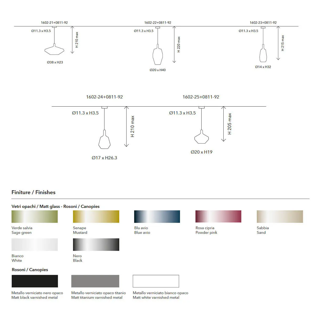 Die Mom-Lampen sind von der venezianischen Tradition inspiriert und erinnern in Form und undurchsichtigen Oberflächen an die klassischen Murano-Glasvasen. Sie sind auch in Tisch- und Wandvarianten erhältlich und in den glänzenden Ausführungen wirken sie wie kostbare Edelsteine.