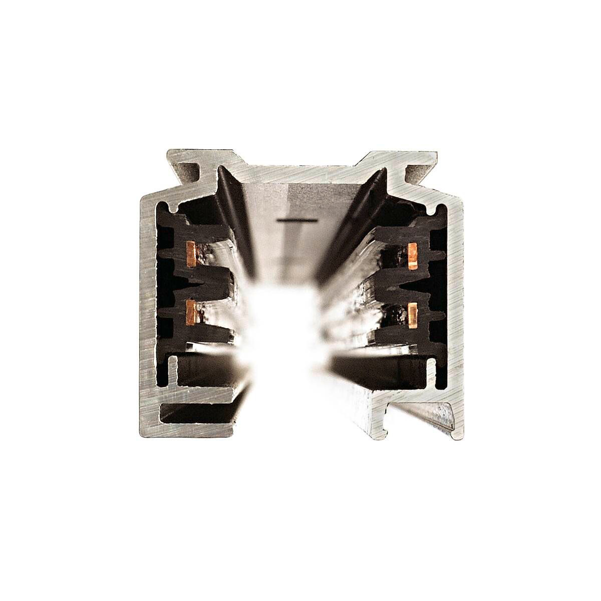 Aluminium Trägerschiene des EUTRAC Hochvolt 3Phasen-Aufbauschienen-Systems. Die Montage kann durch die im Profil vorhandenen Bohrungen direkt an Wand oder Decke erfolgen. Die Aufbauversion dieses Systems ist in mehreren Farben und Längen verfügbar
