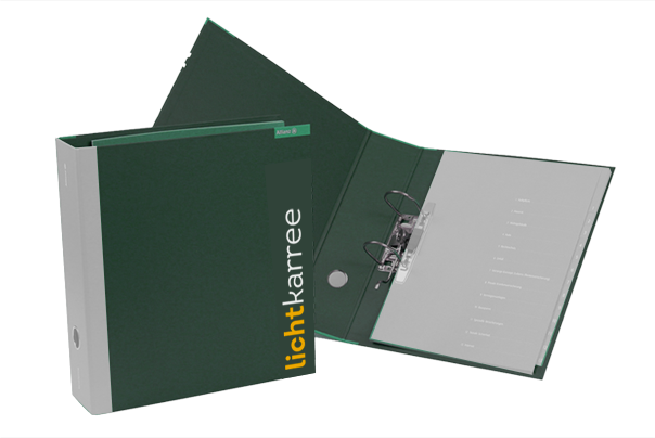 Es ist soweit: Die Dokumentation des Lichtkonzepts händigen wir Ihnen mit den technischen Daten der Leuchten in einer Mappe aus.