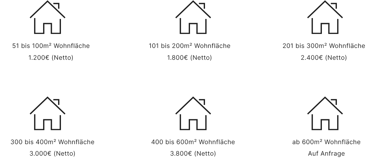Wie in der Grafik dargestellt, orientieren sich die Kosten für eine Lichtplanung in München an der Raumgröße. Ist der Auftragswert mindestens sechsmal höher als das Basis-Planungshonorar, gewähren wir Ihnen eine Gutschrift von 100 % auf die Lichtplanungskosten.