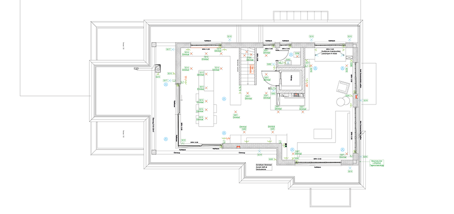 Steht das finale Lichtkonzept, erarbeiten wir für die handwerklichen Gewerke die Ausführungspläne mit Bemaßung. Für dekorative Leuchten konzeptionieren wir einen separaten Leuchtenplan.