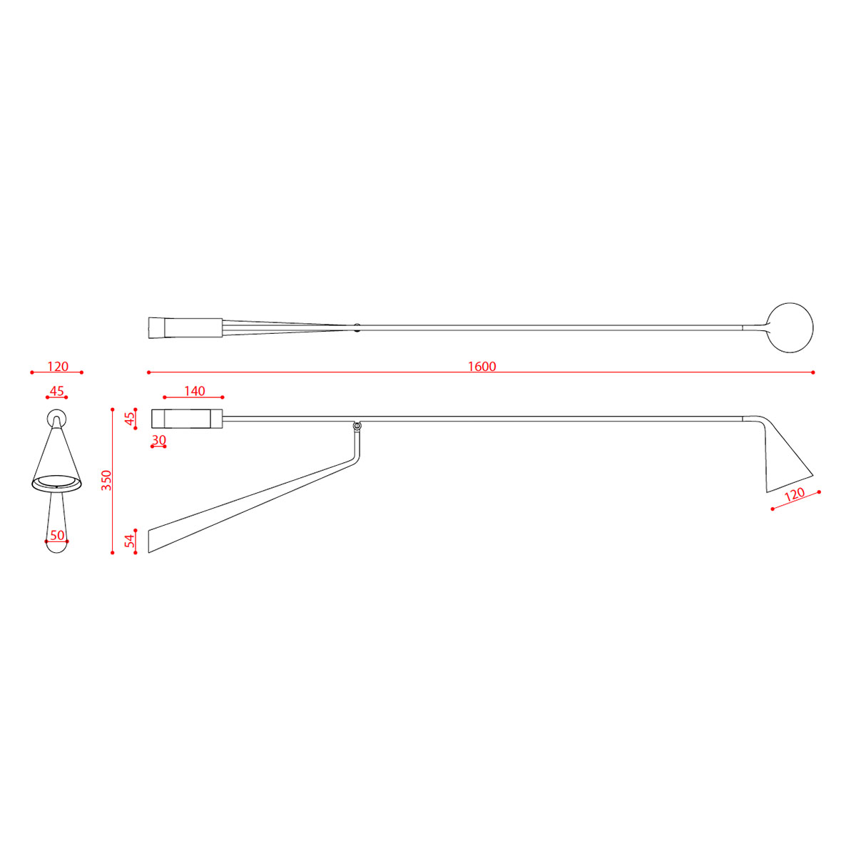 | Abmessungen: | Schirm Ø: 12 cm, H: 35 cm, T: 160 cm |