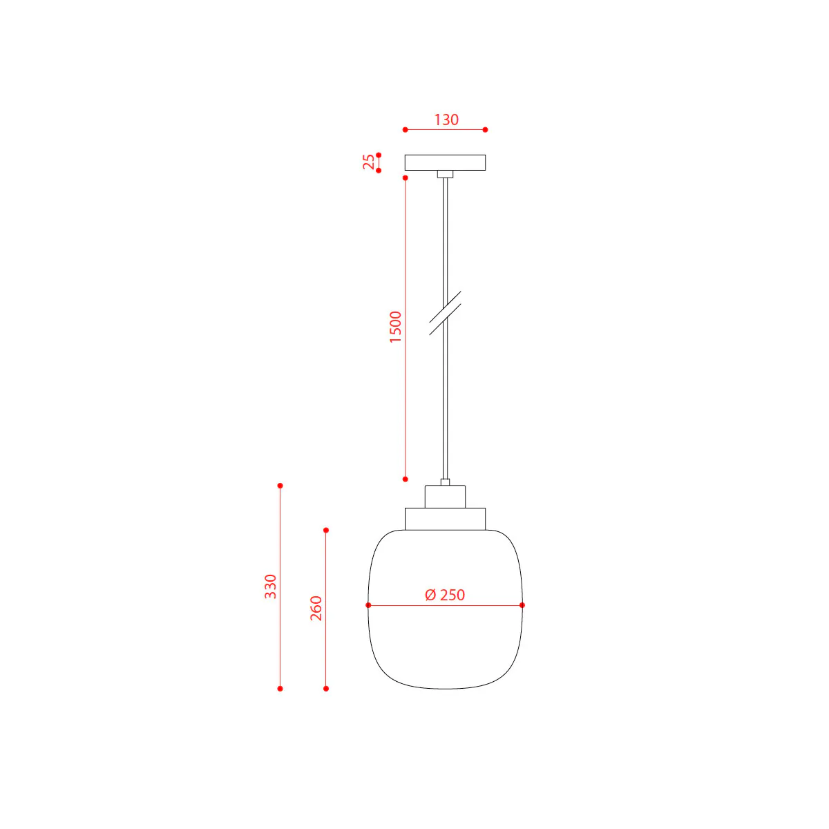 | Abmessungen: | Ø: 25 cm, H: 33 cm, Pendelhöhe max. 150 cm |