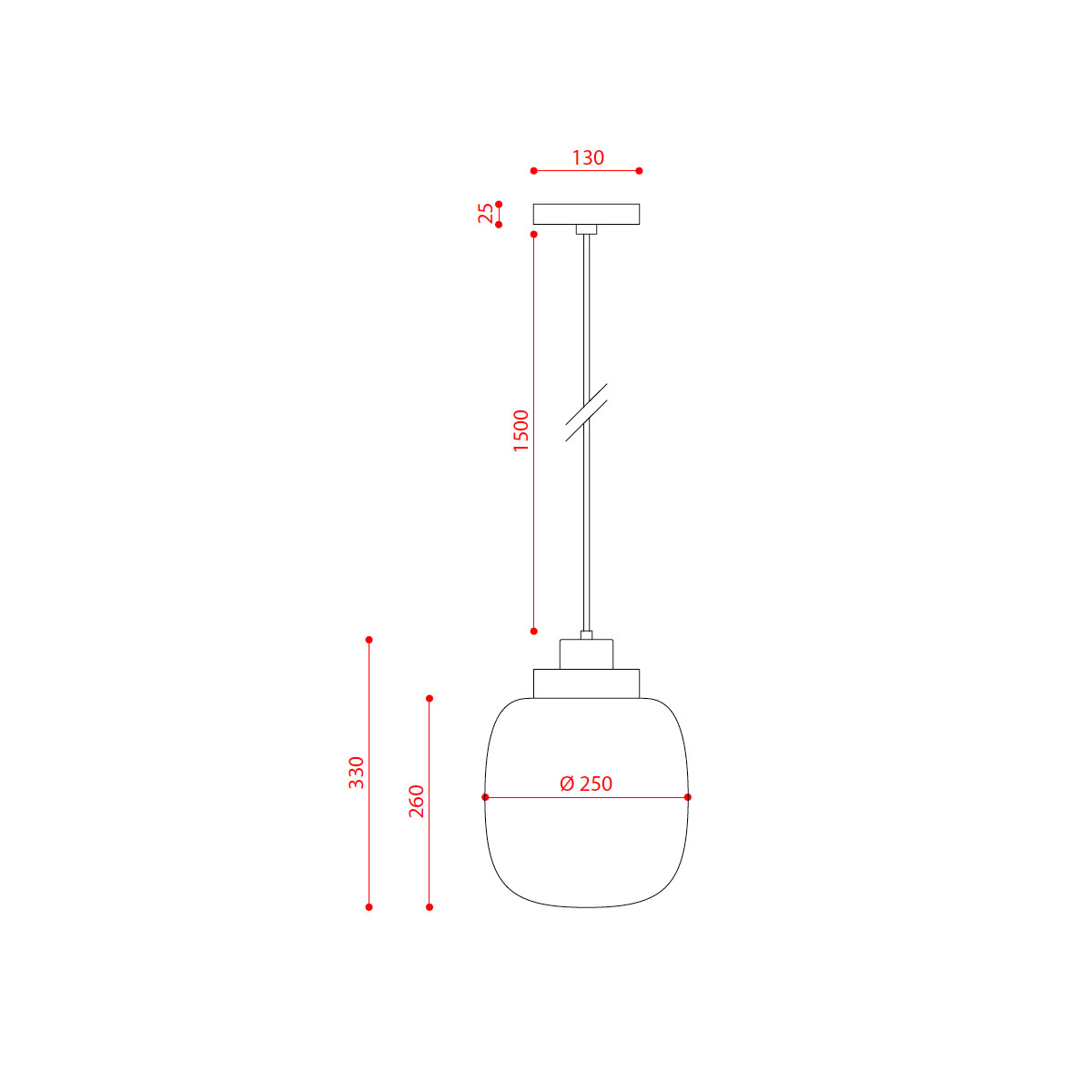 | Abmessungen: | Ø: 25 cm, H: 33 cm, Pendelhöhe max. 150 cm |