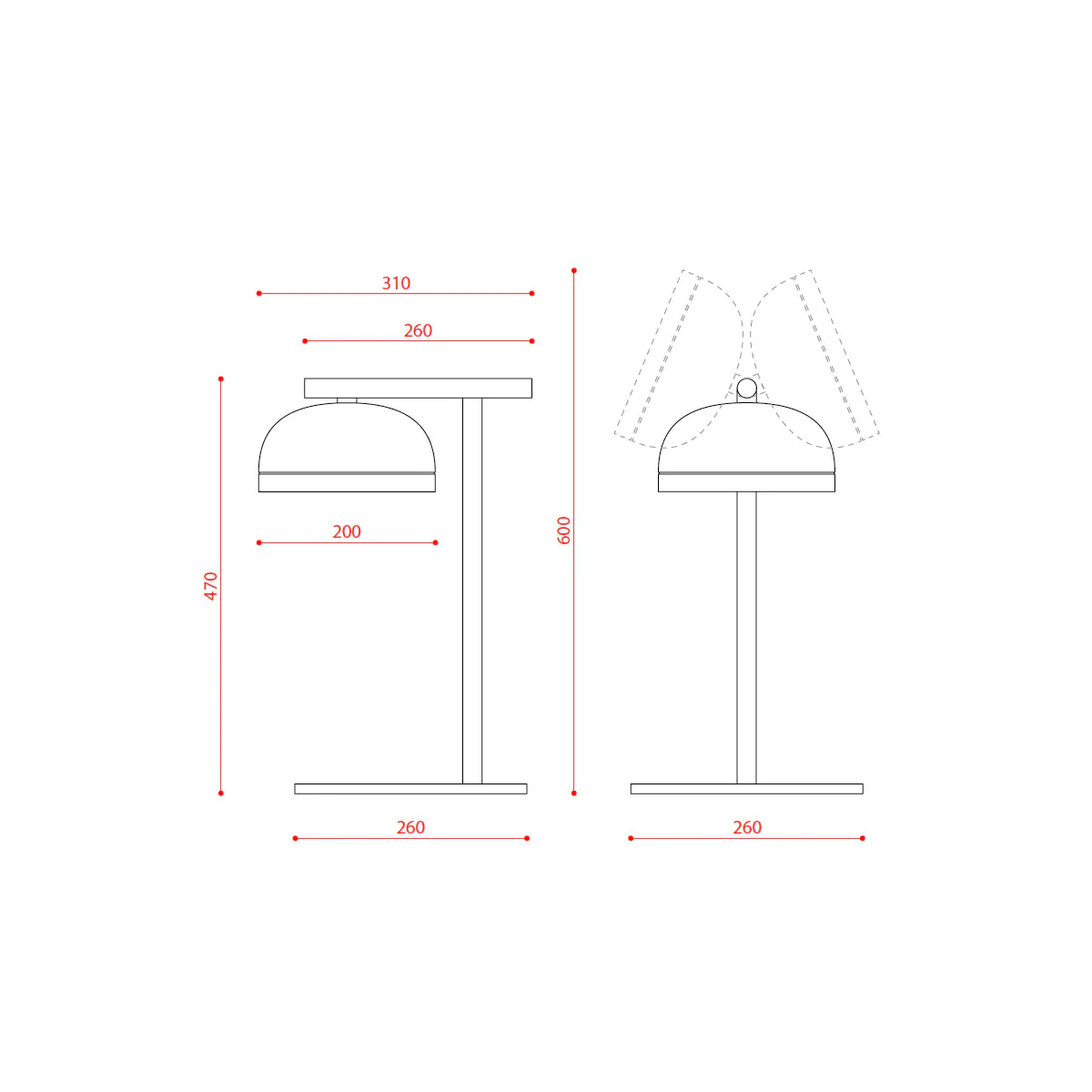 | Abmessungen: | Fuß Ø: 26 cm, Schirm Ø: 20 cm, H: 47 cm, Kabel 150 cm |