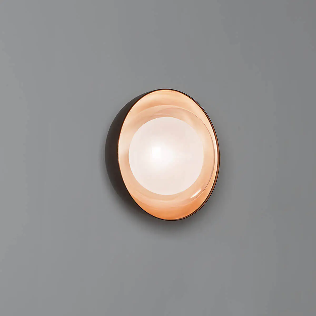 Die Kollektion besteht aus neo-vintage Metalllampen mit einem doppelseitigen Diffusor aus Borosilikatglas. Die Metallkuppeln (eine innere und eine äußere) haben auf der Innenseite verschiedene Farben oder Oberflächen: Sie können lackiert oder poliert sein, entweder in glänzendem Messing oder hellem Kupfer, um verschiedene texturale Kombinationen zu schaffen. Die Kollektion umfasst Hänge-, Steh-, Tisch-, Wand- und Deckenlampen. Die Hänge- und Wandlampenversionen sind mit einer zusätzlichen G9-Lichtquelle im unteren Teil der Lampe ausgestattet. Die Struktur besteht aus einem Metallgehäuse und Halterungen, die mit Epoxidpulvern beschichtet sind. Die Kuppeln (innen und außen) erzeugen einen doppelten Farbeffekt und rahmen den Kronleuchter ein. Das Licht strahlt auch aus dem zylindrischen Element im unteren Teil aus. Die doppelwandigen Borosilikatglas-Kugeln haben einen Durchmesser von Ø16 cm.