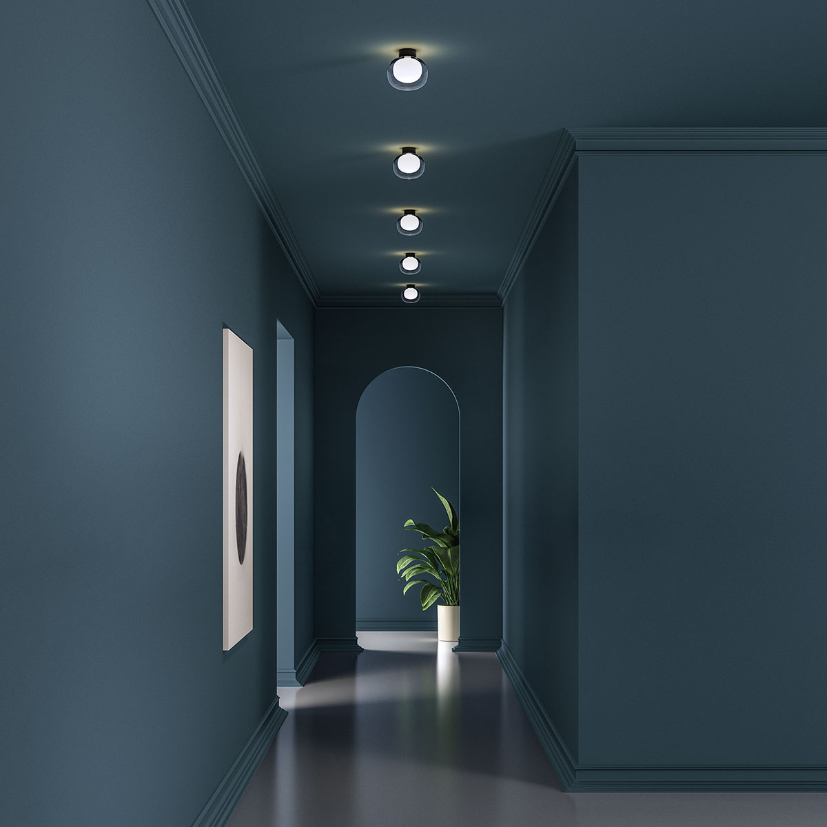 Tooy Nabila 552.42 ist eine kleine Kugel Deckenleuchte, die an einer Halterung aus Metall mit Details aus Messing oder Chrome an der Decke oder auch an der Wand befestigt wird. Die dezente Wandleuchte Tooy Nabila 552.42 kann auch als Deckenleuchte verwendet werden oder anstelle Aufbaustrahler in einer Reihe an der Decke montiert werden. Durch das doppelwandige Borosilikatglas blendet diese Leuchte nicht.