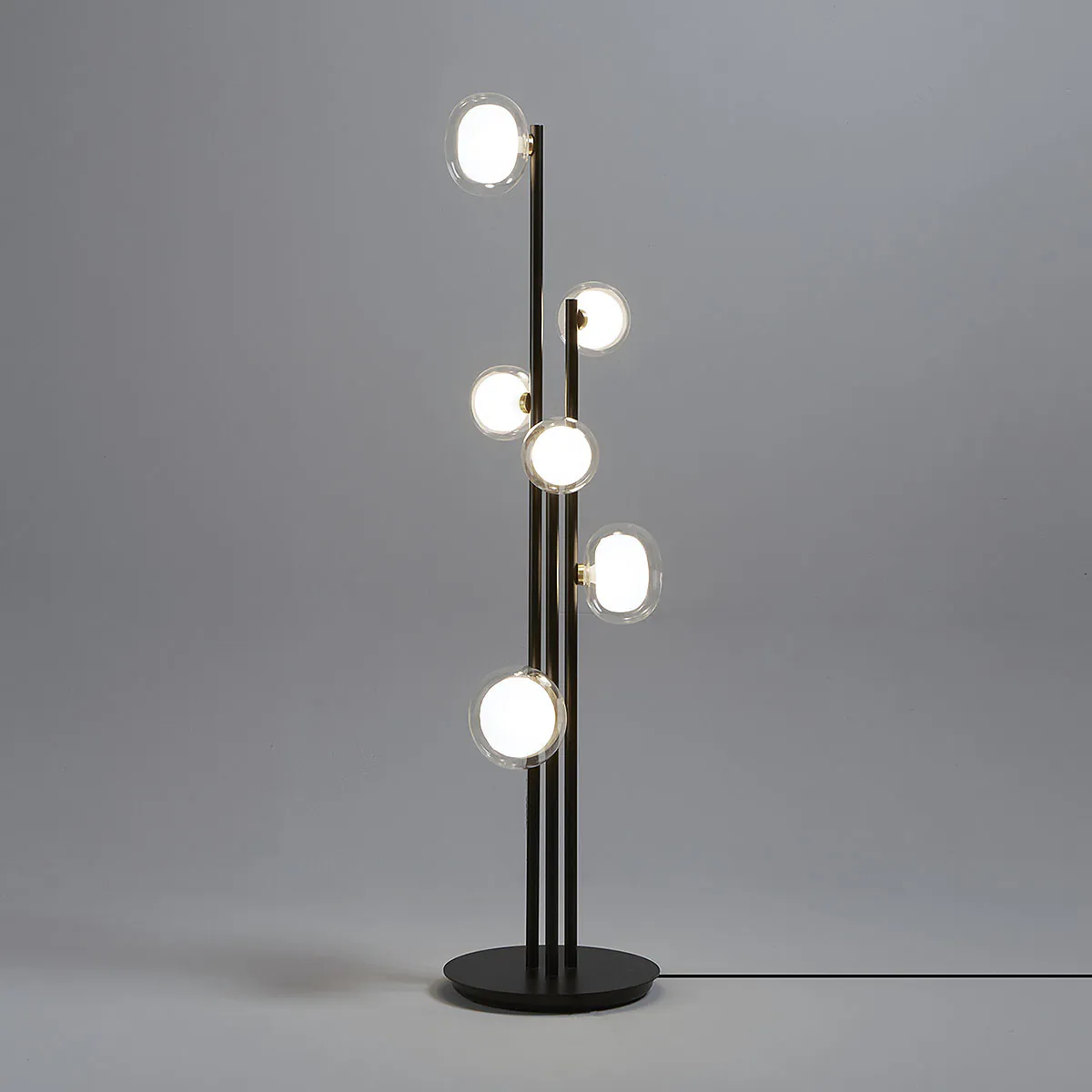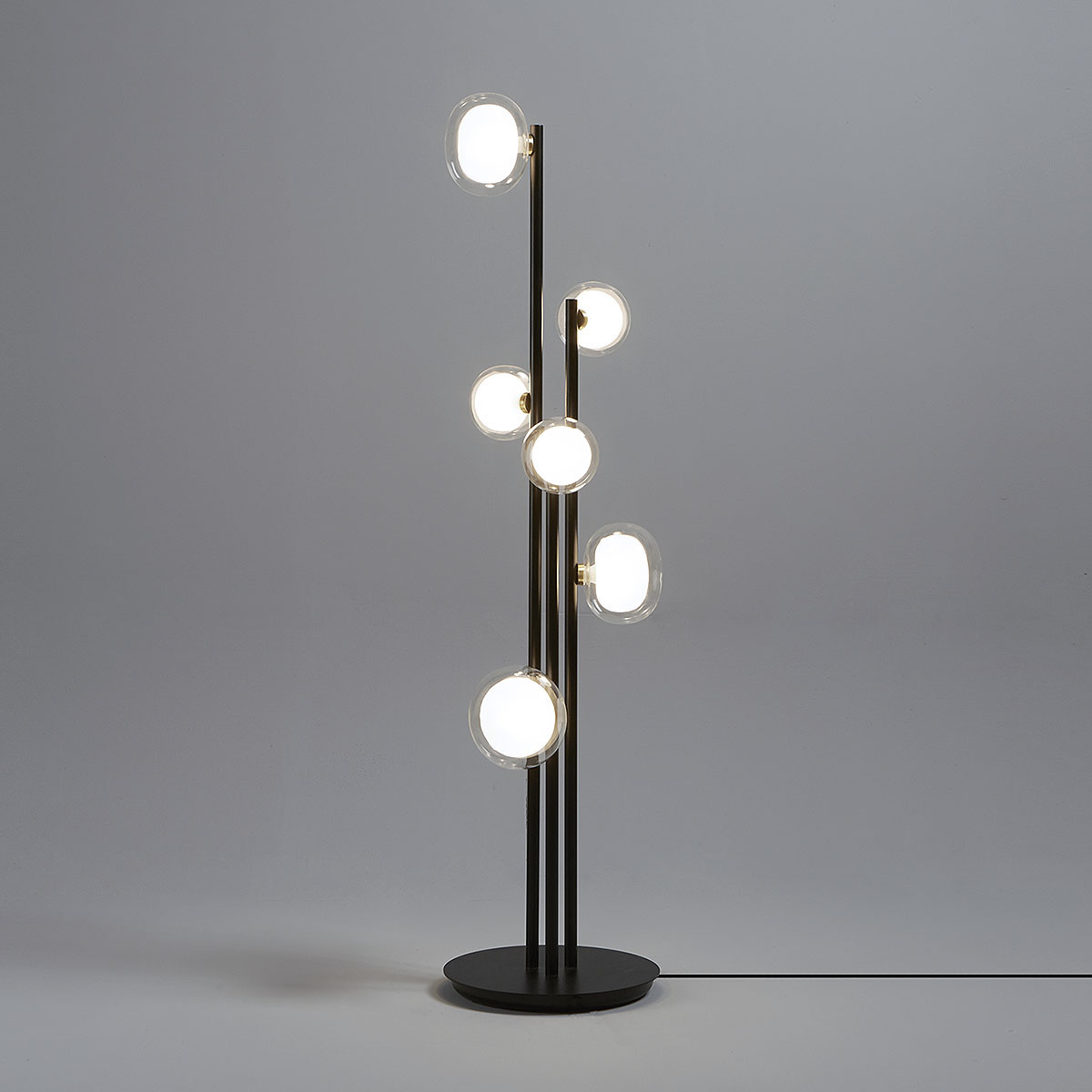 TOOY Nabila 552.66 Stehleuchte 6-flammig H: 140 cm, Schwarz Matt / Messing & Klarglas, Schaltbar