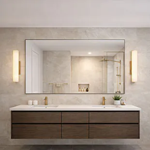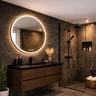 Eine gezielte Spiegelbeleuchtung im Bad ist besonders wichtig für tägliche Routinen wie Rasieren oder Schminken. Sie sorgt für gleichmäßiges und blendfreies Licht im Gesichtsbereich.